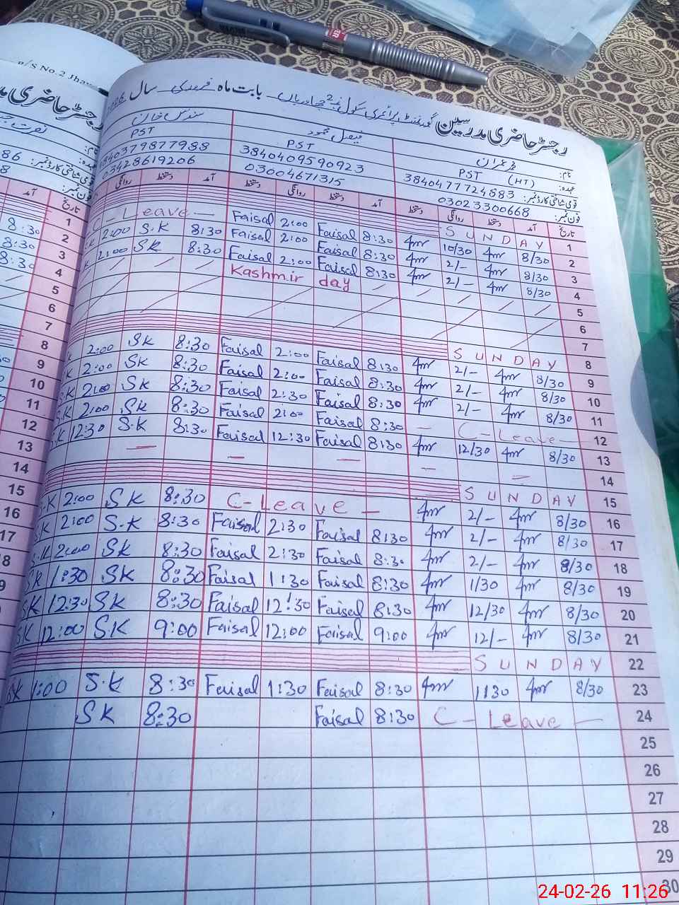 | Leave | Duty | Absent | Maternity | Medical | Ex- Pak |