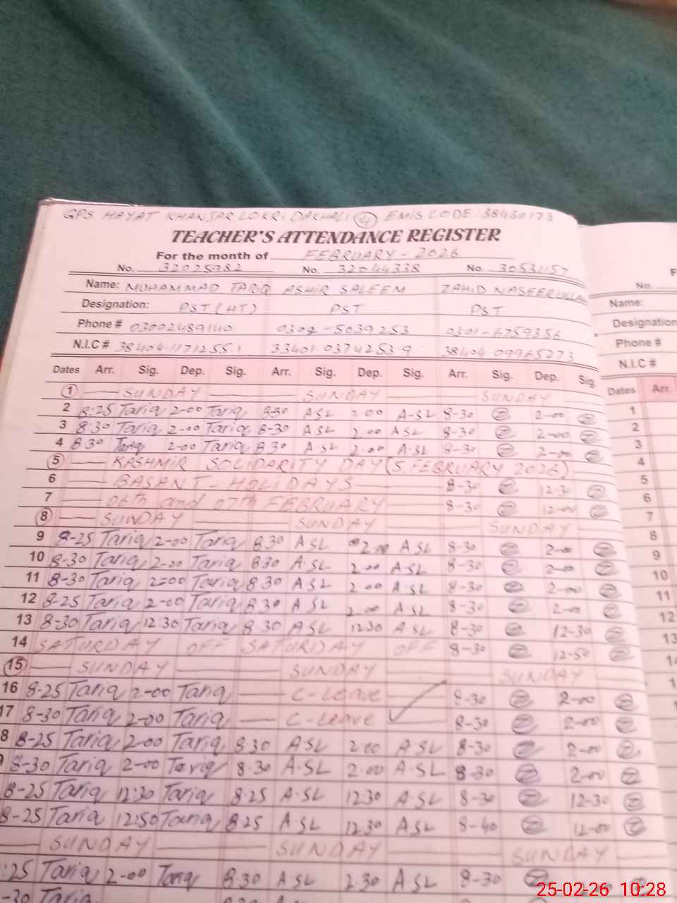 | Name: Mu**** Ta**** Designation: (School Headmaster's/Headmistress's) PST Phone/Cell Number: 03**** |