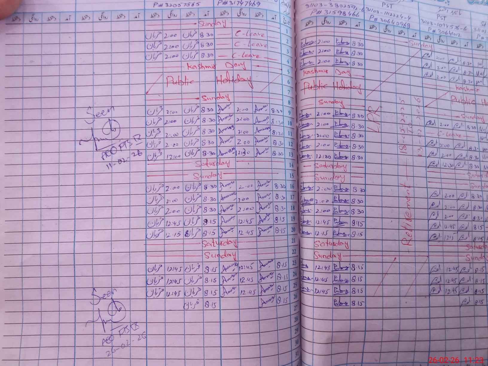 | CNIC | Full Name | Designation | R/C | Absence During Last Calender Month |