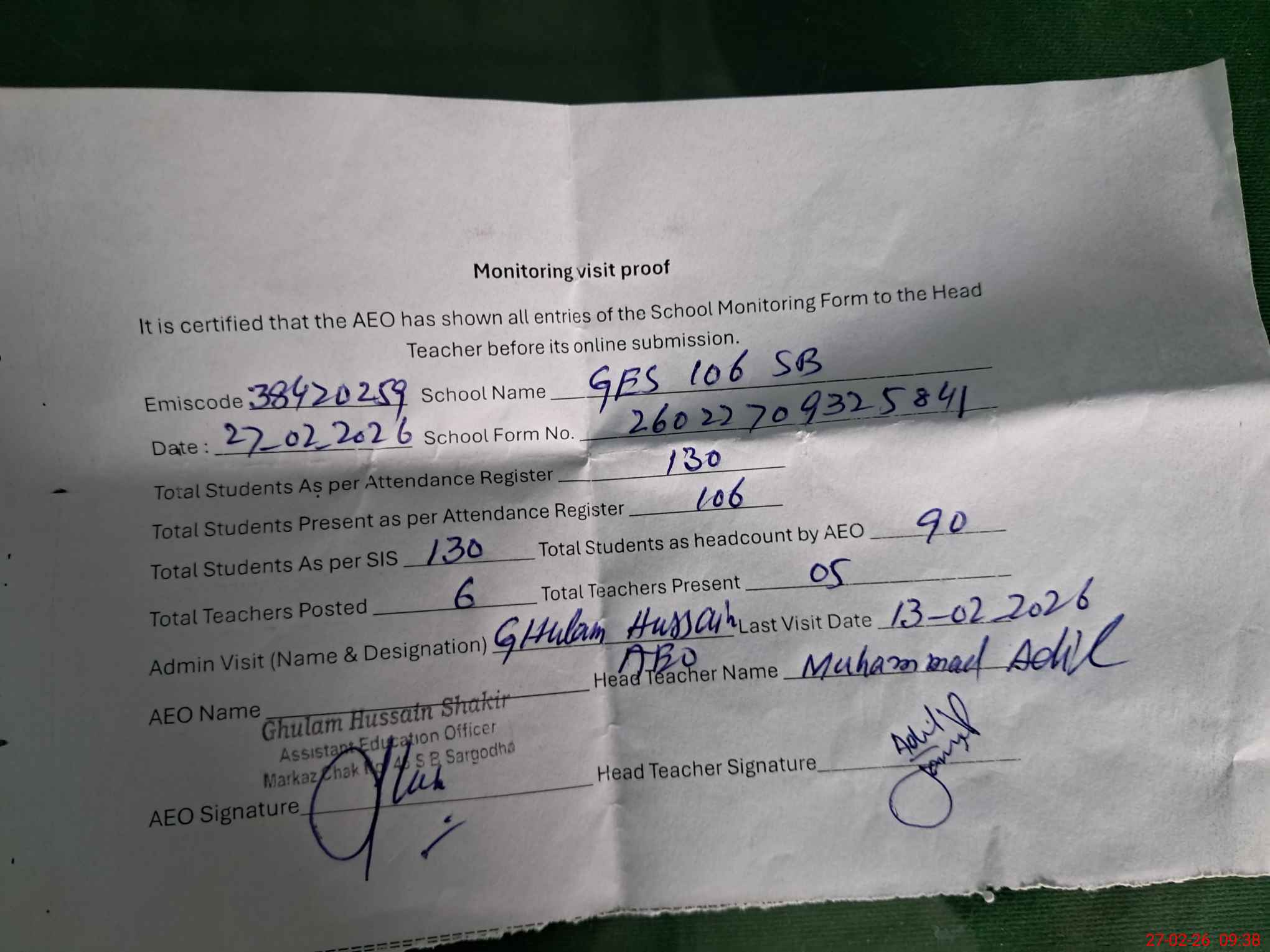 | EMIS Code: 38420259 | Name of School: GES CHAK NO.106 SB | |||