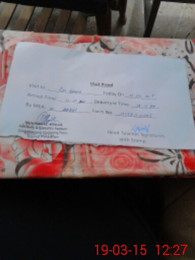 | School Visited by School Health & Nutrition Supervisor (No. of Visits) | 1 | Name1: | NIGHAT AFROOZ | Name2: | NIL |