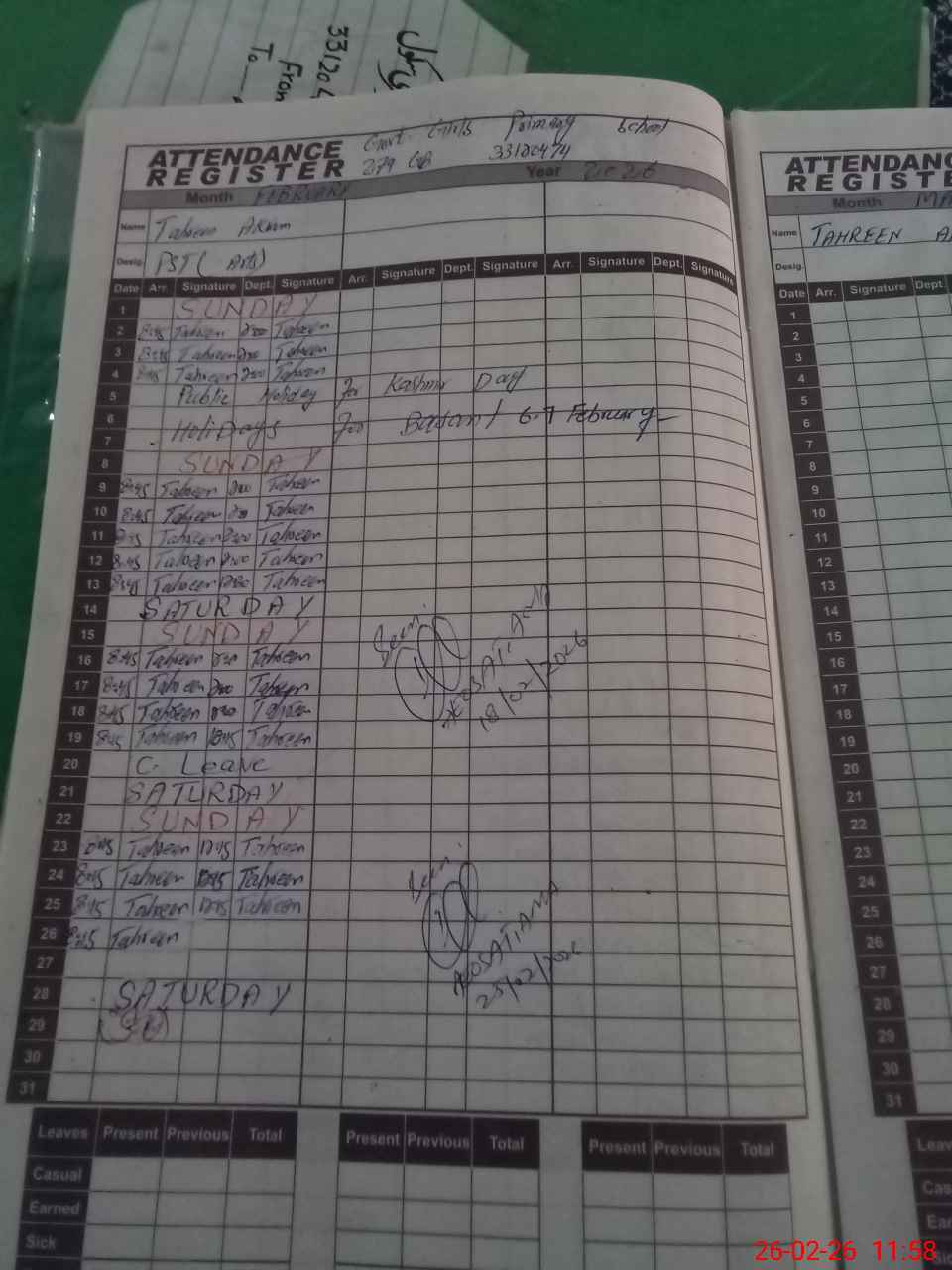 | Attendance Register | Head Teacher | MEA with School | Visit Proof |