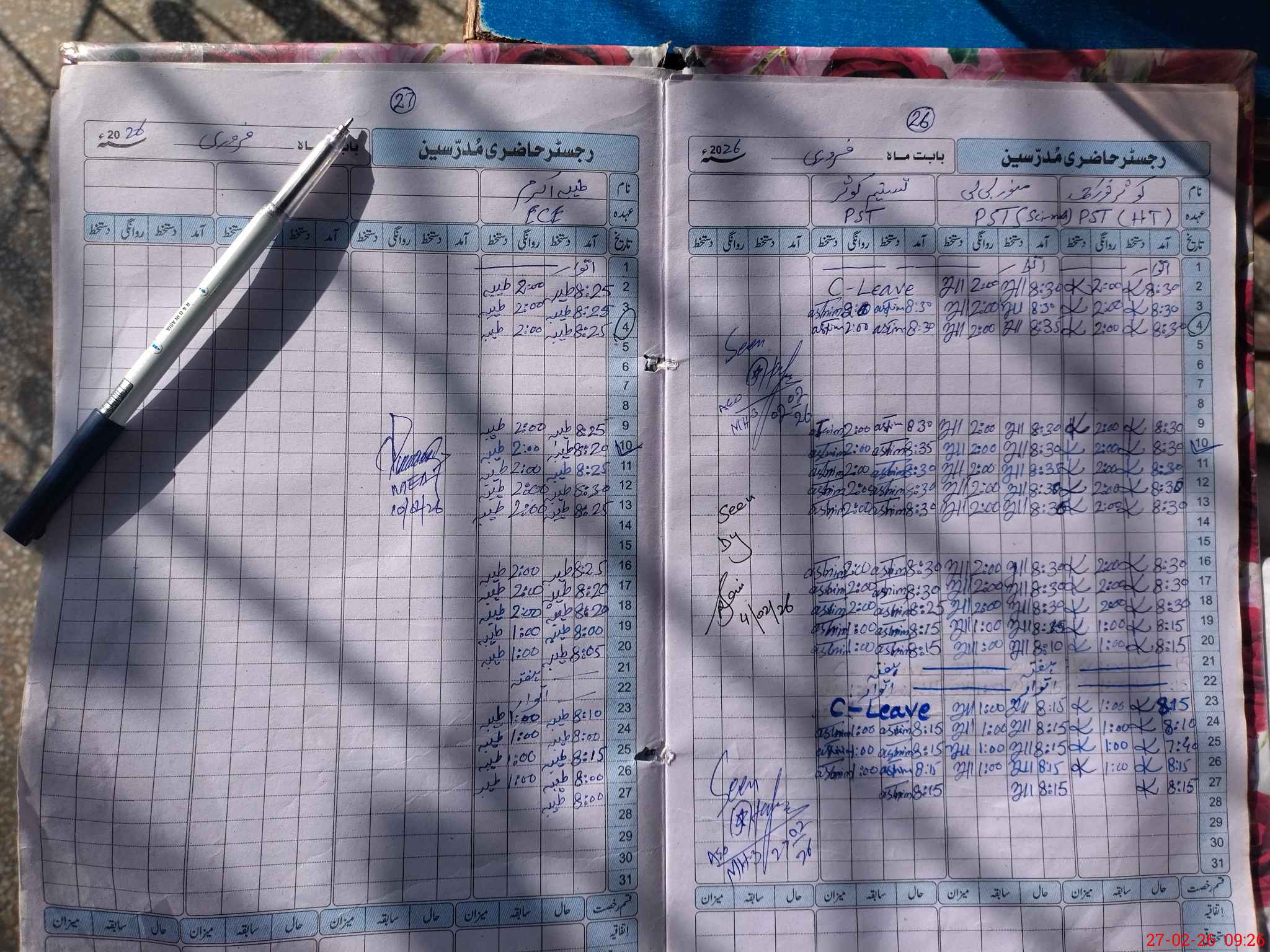 | Leave | Duty | Absent | Maternity | Medical | Ex- Pak |
