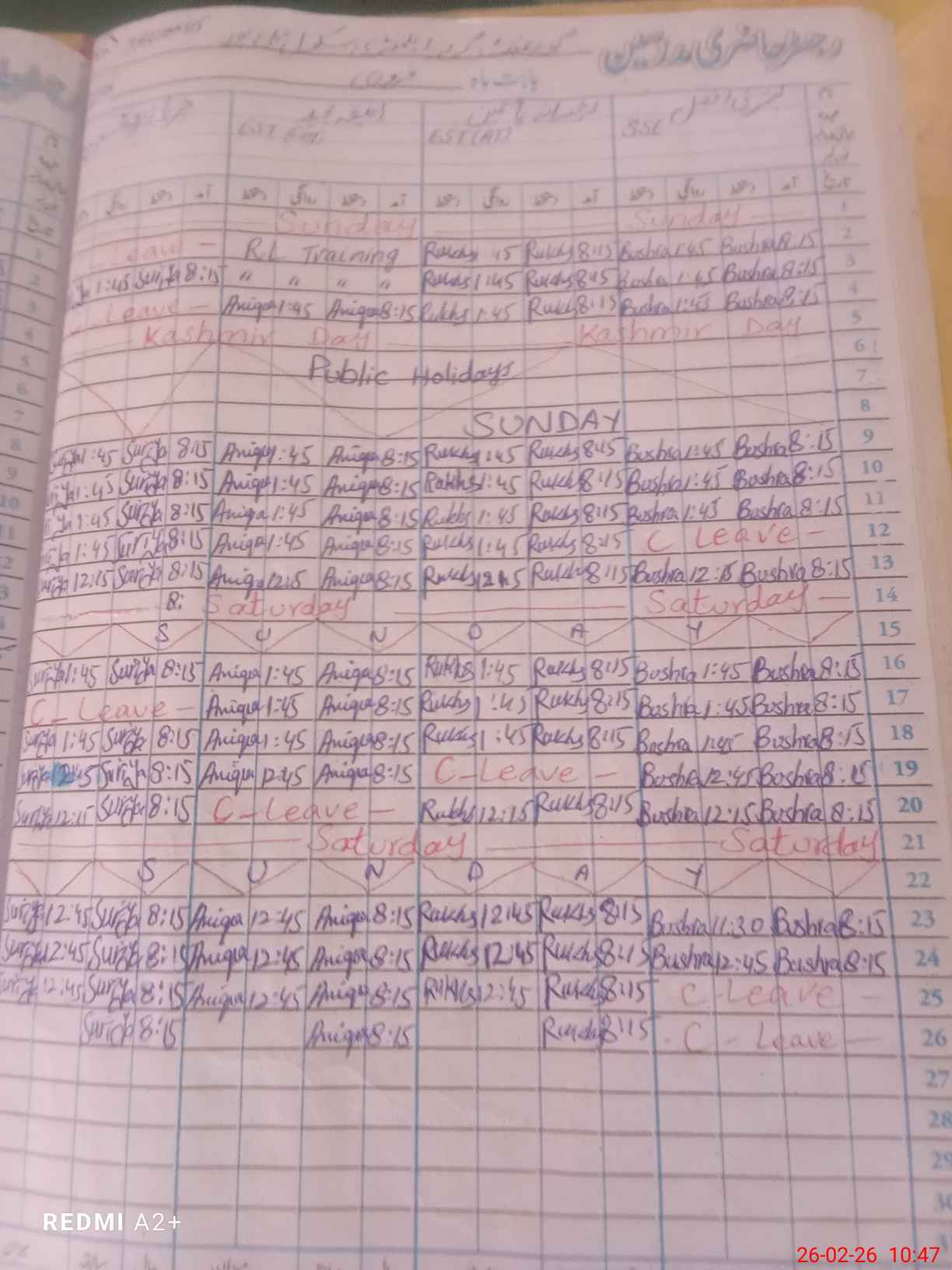 | Leave | Duty | Absent | Maternity | Medical | Ex- Pak |