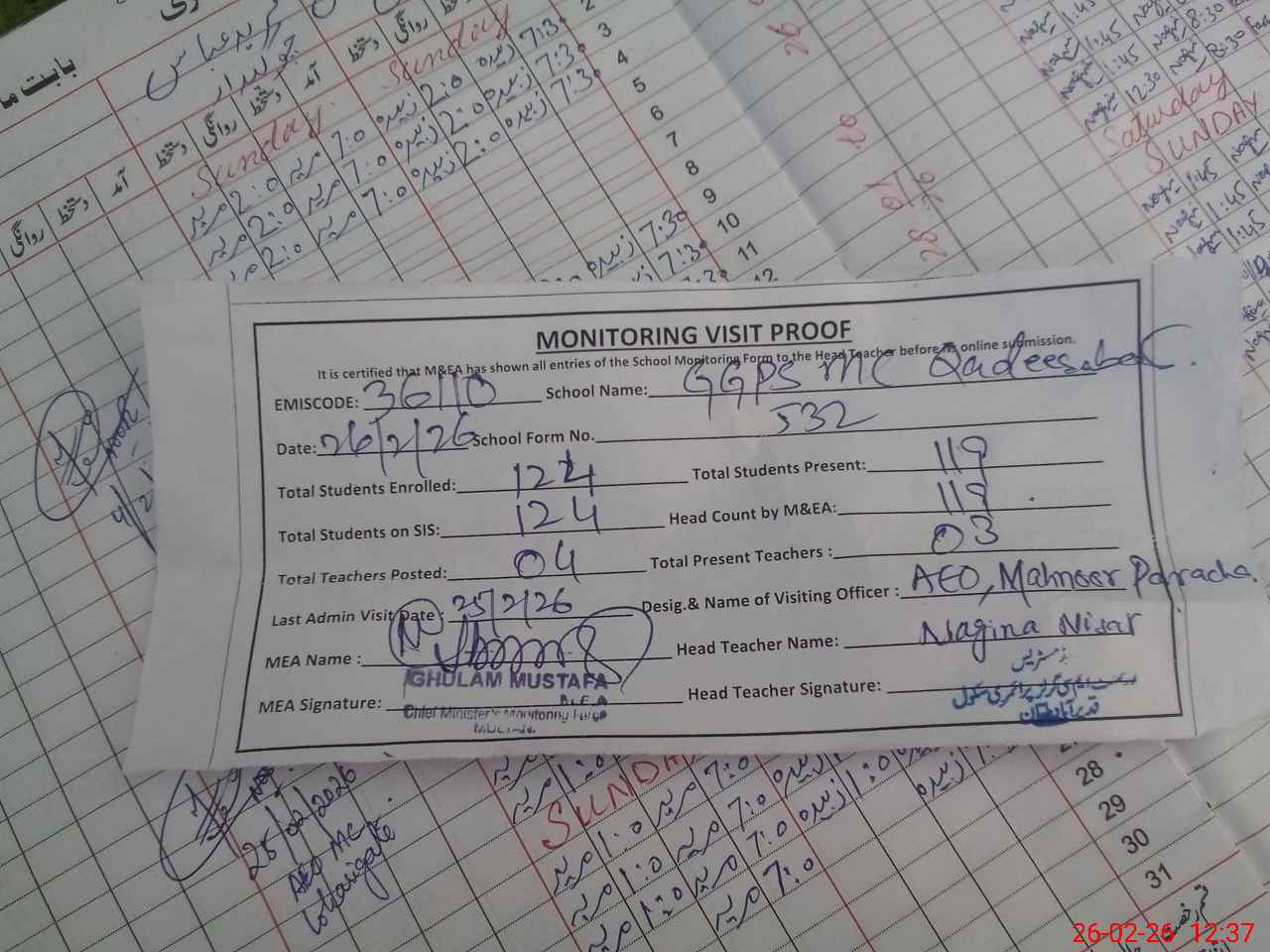 | EMIS Code: 36110355 | Name of School: GGPS MC QADEER ABAD MULTAN | |||