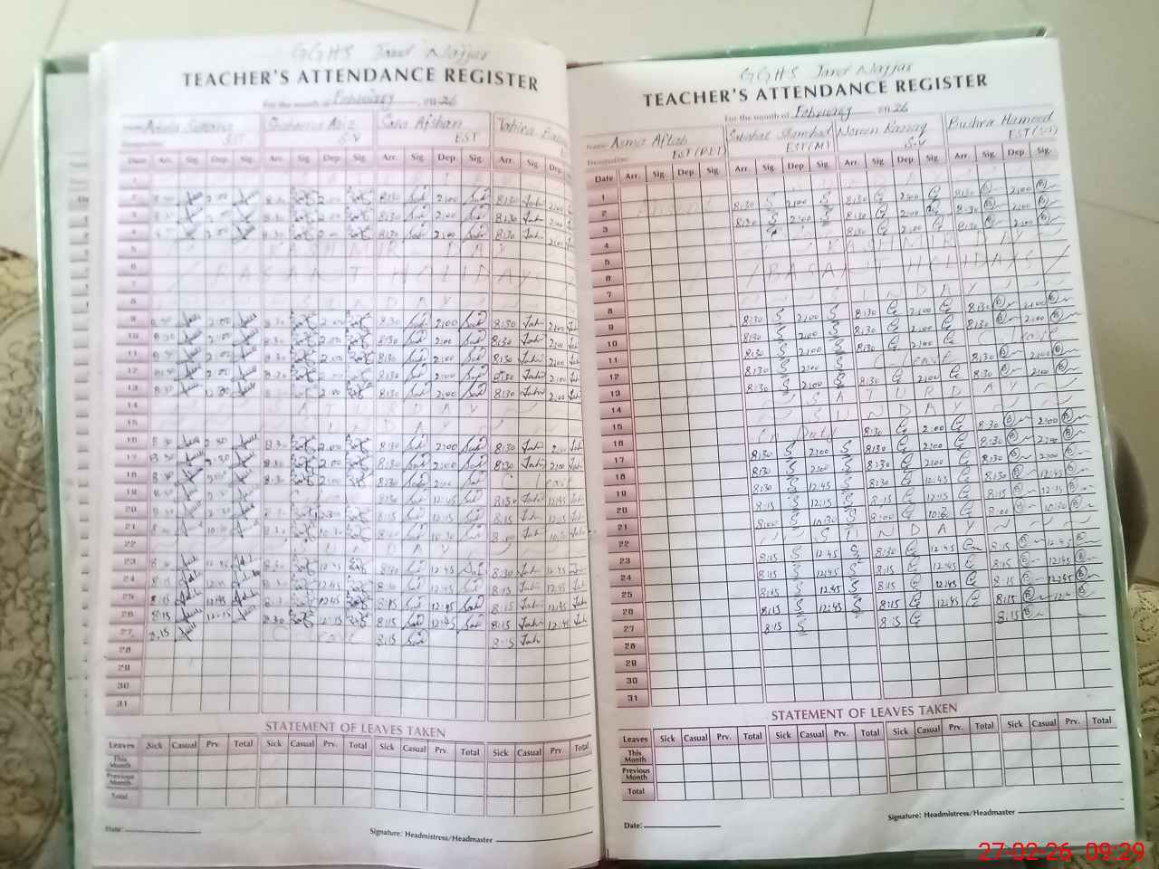 | 37**** | As**** Af**** | EST Physical Education | Regular | 0 | 0 | 0 | 0 | 0 | 0 | 0 | 0 | 0 | Absent (Un-Authorized) |