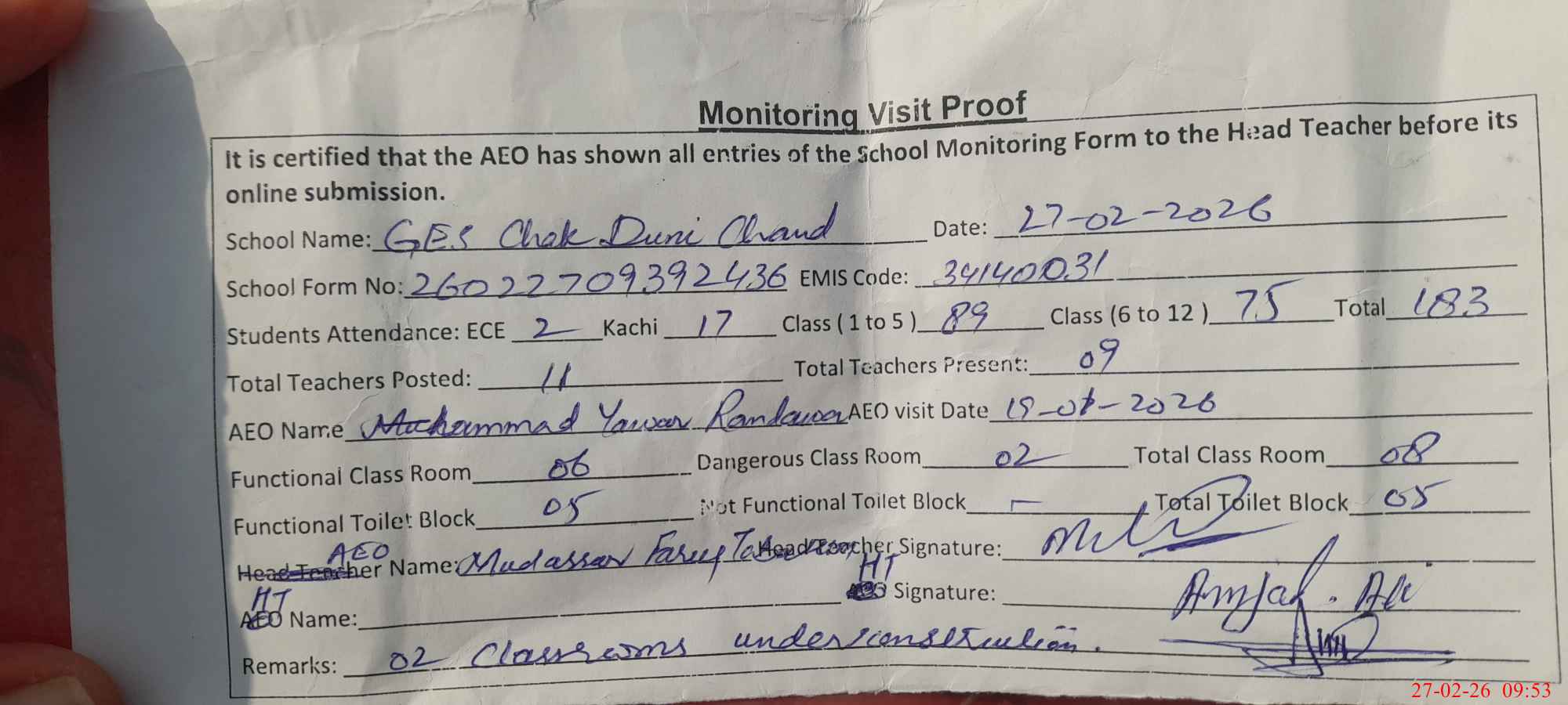 | EMIS Code: 34140031 | Name of School: GES CHAK DOONI CHAND | |||