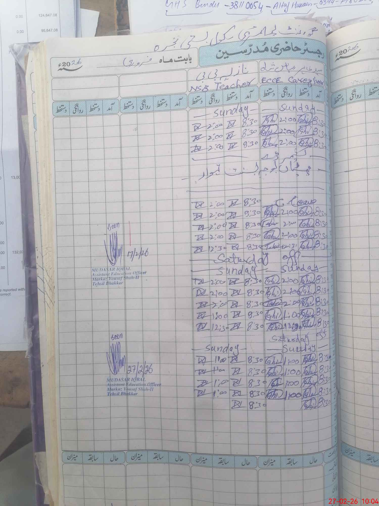 | Name: Sy**** Al**** Ab**** Sh**** Designation: (School Headmaster's/Headmistress's) Ese/sci(math) Phone/Cell Number: 03**** |