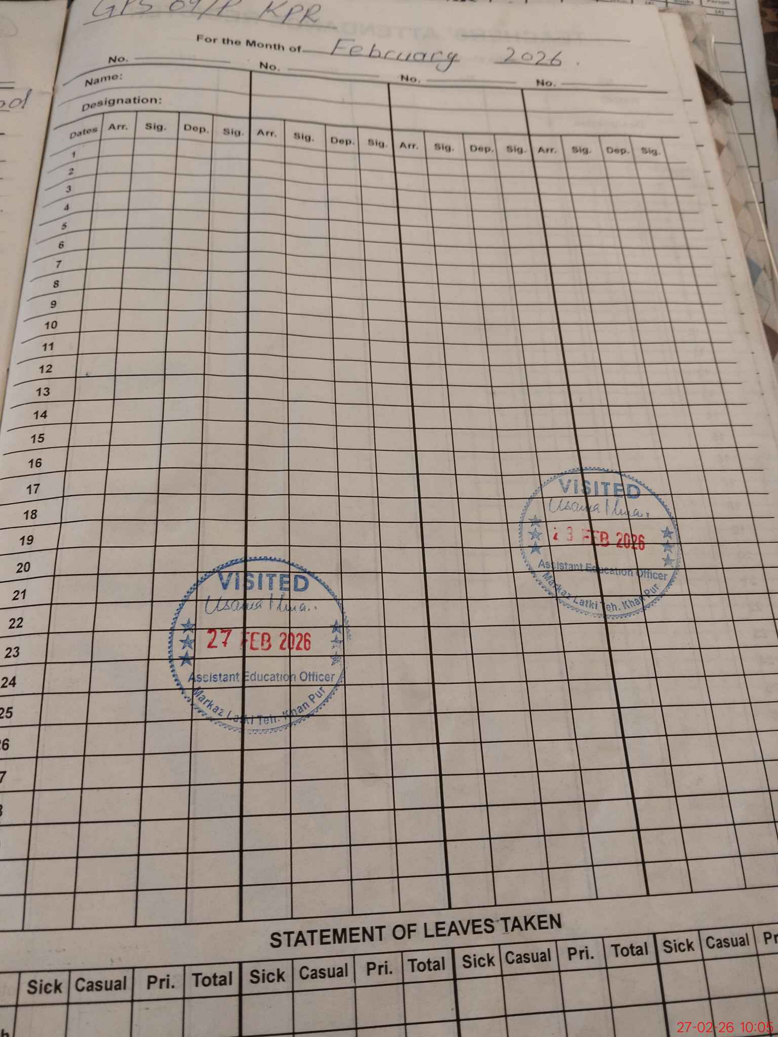 | Monitoring Date: 27-02-2026 | Start Time: 27-02-2026 09:48 AM | End Time: 27-02-2026 10:11 AM | Name of MEA: Us**** Um**** | |