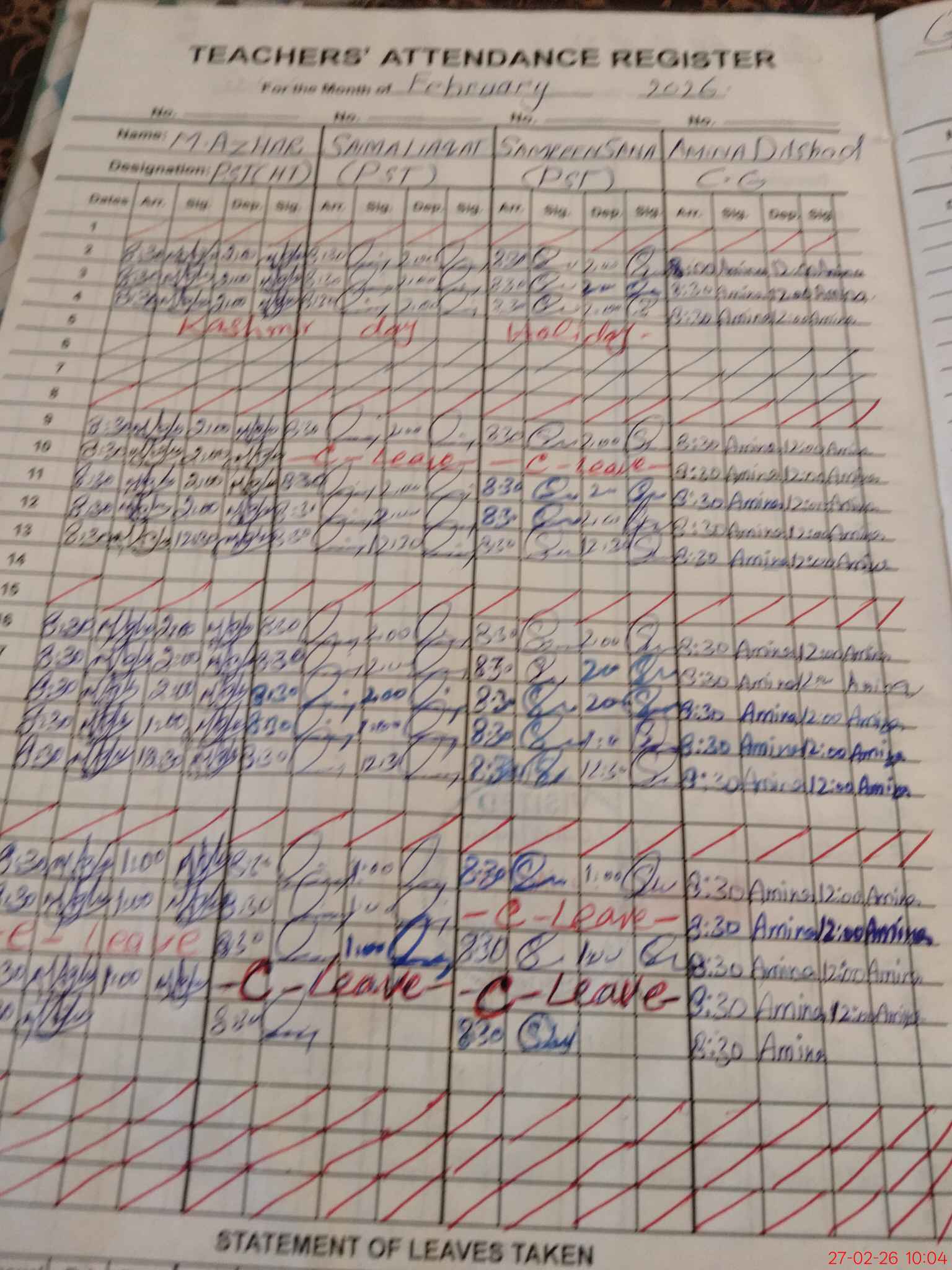 | Leave | Duty | Absent | Maternity | Medical | Ex- Pak |