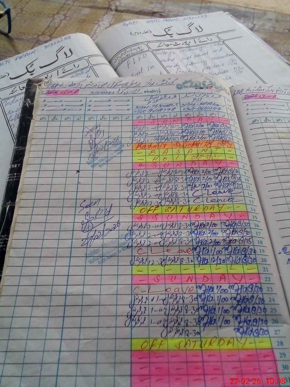 | Name: MU**** IR**** Designation: (School Headmaster's/Headmistress's) PST Phone/Cell Number: 03**** |