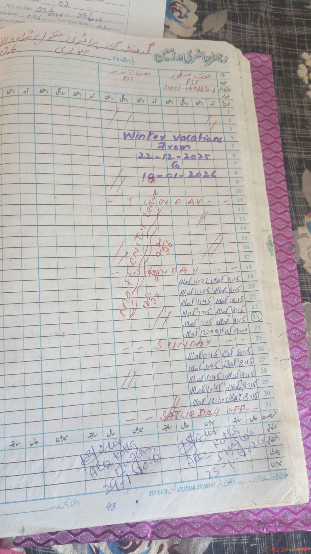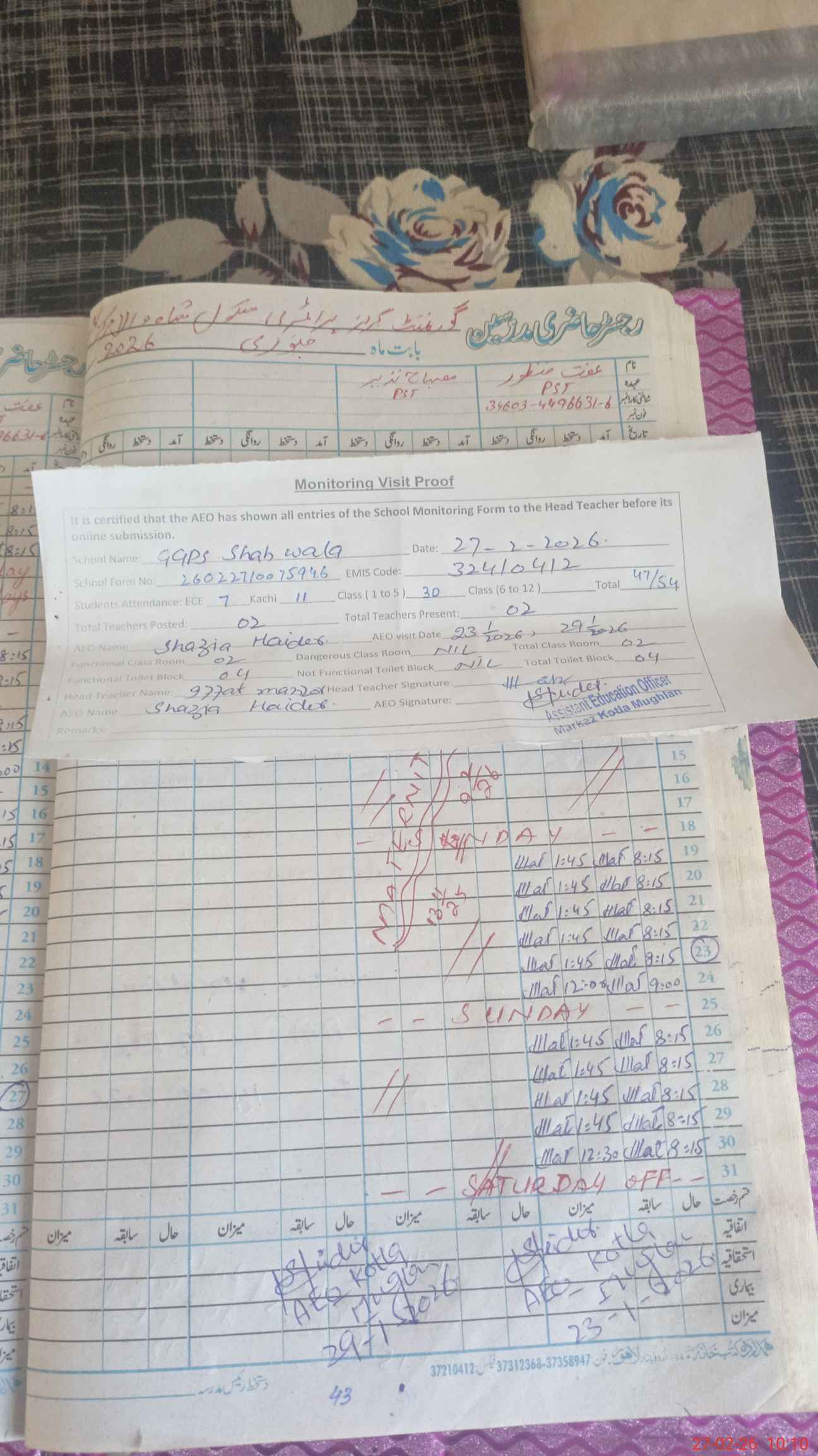| EMIS Code: 32410412 | Name of School: GGPS SHAH WALA | |||