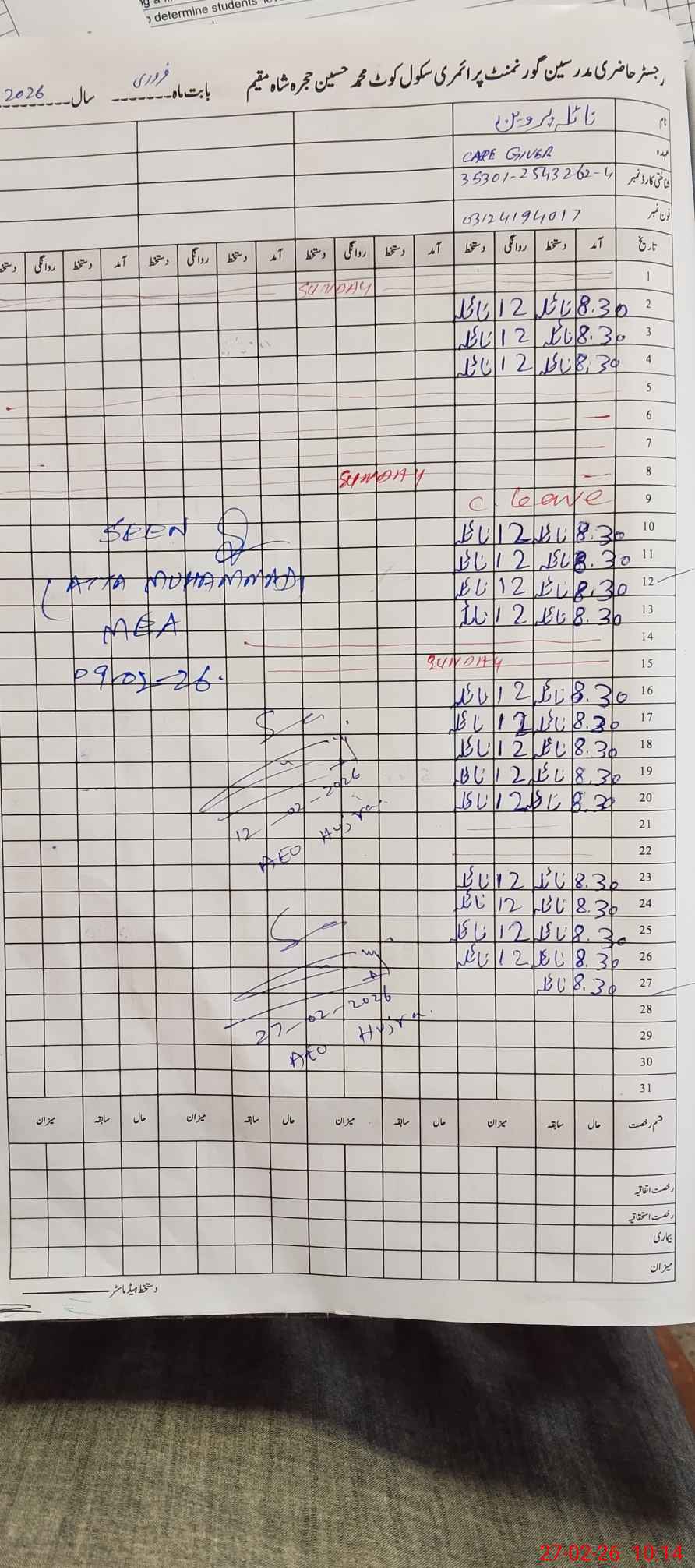 | Name of AEO: | AEO Contact No.: | MEA Phone#: 03**** | ||