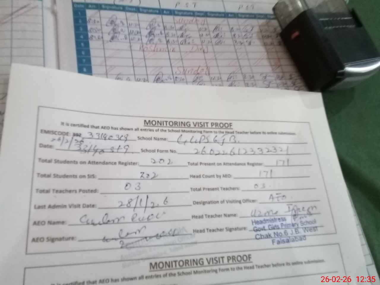 | EMIS Code: 33140319 | Name of School: GGPS CHAK 6 JB WEST | |||