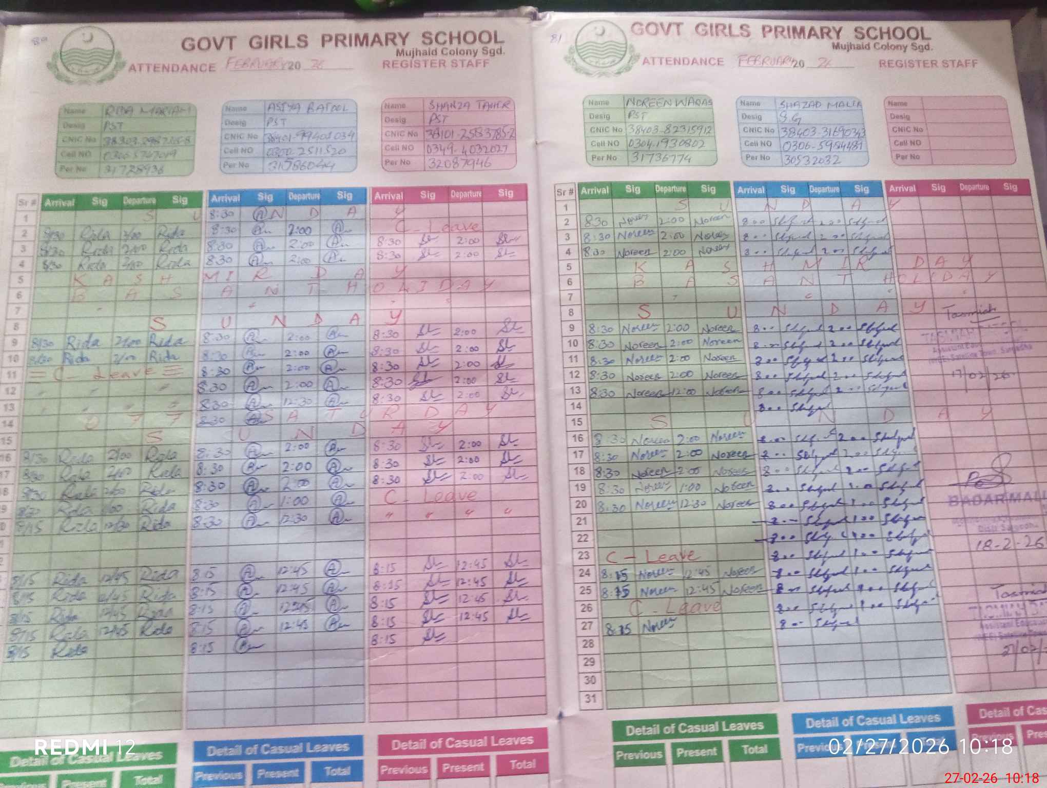 | EMIS Code: 38420642 | Name of School: GGPS MUJAHID COLONY | |||