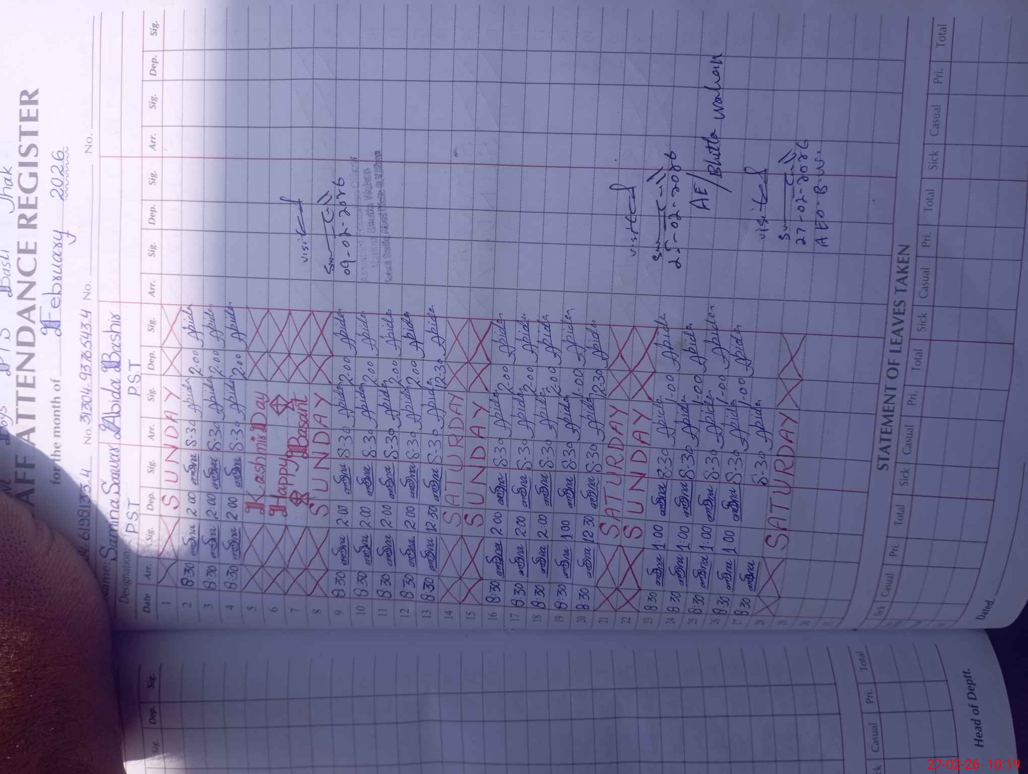 | Name: MAr**** Designation: (School Headmaster's/Headmistress's) PST Phone/Cell Number: 03**** |