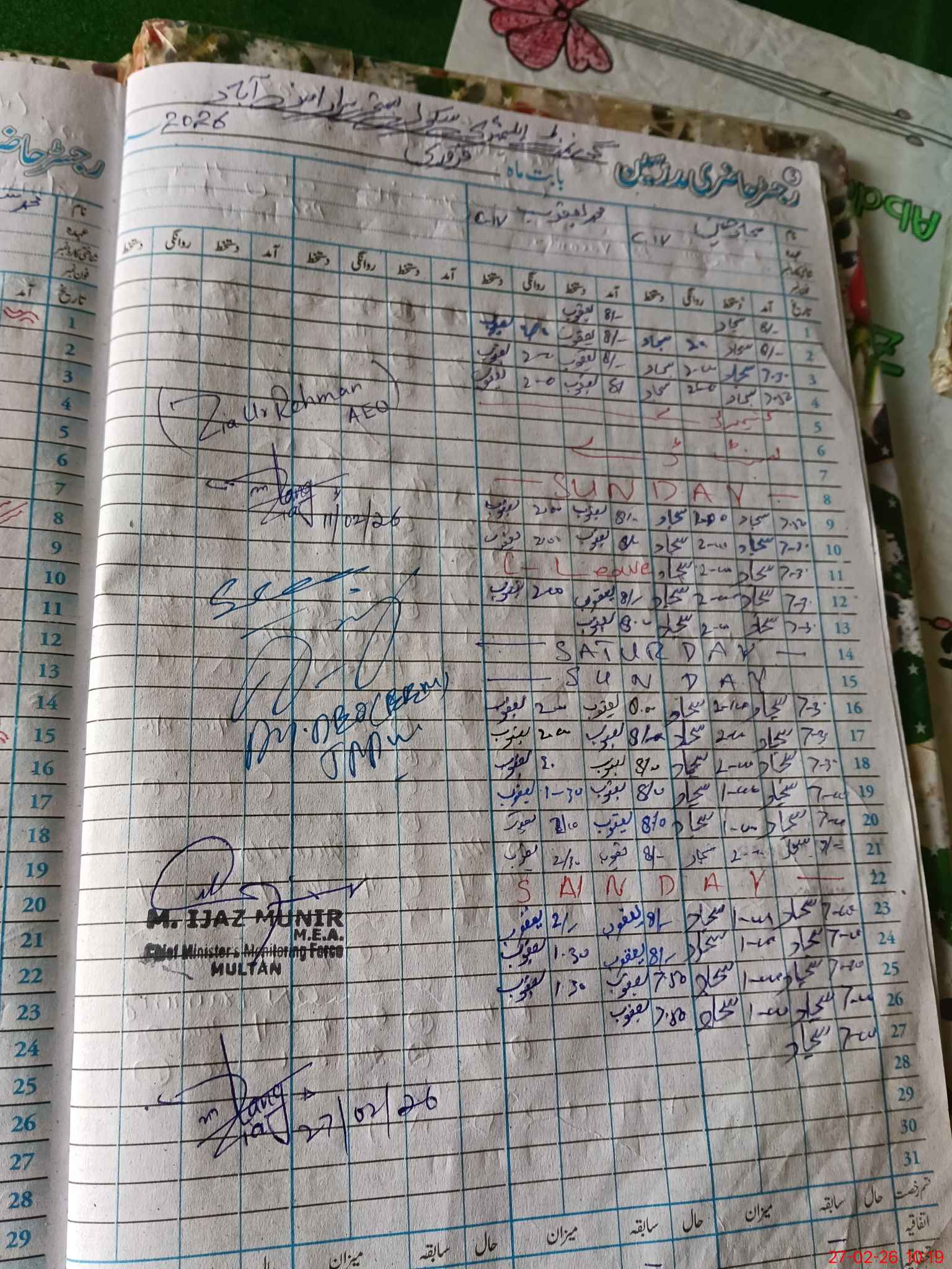| Attendance Register | Head Teacher | MEA with School | Visit Proof |
