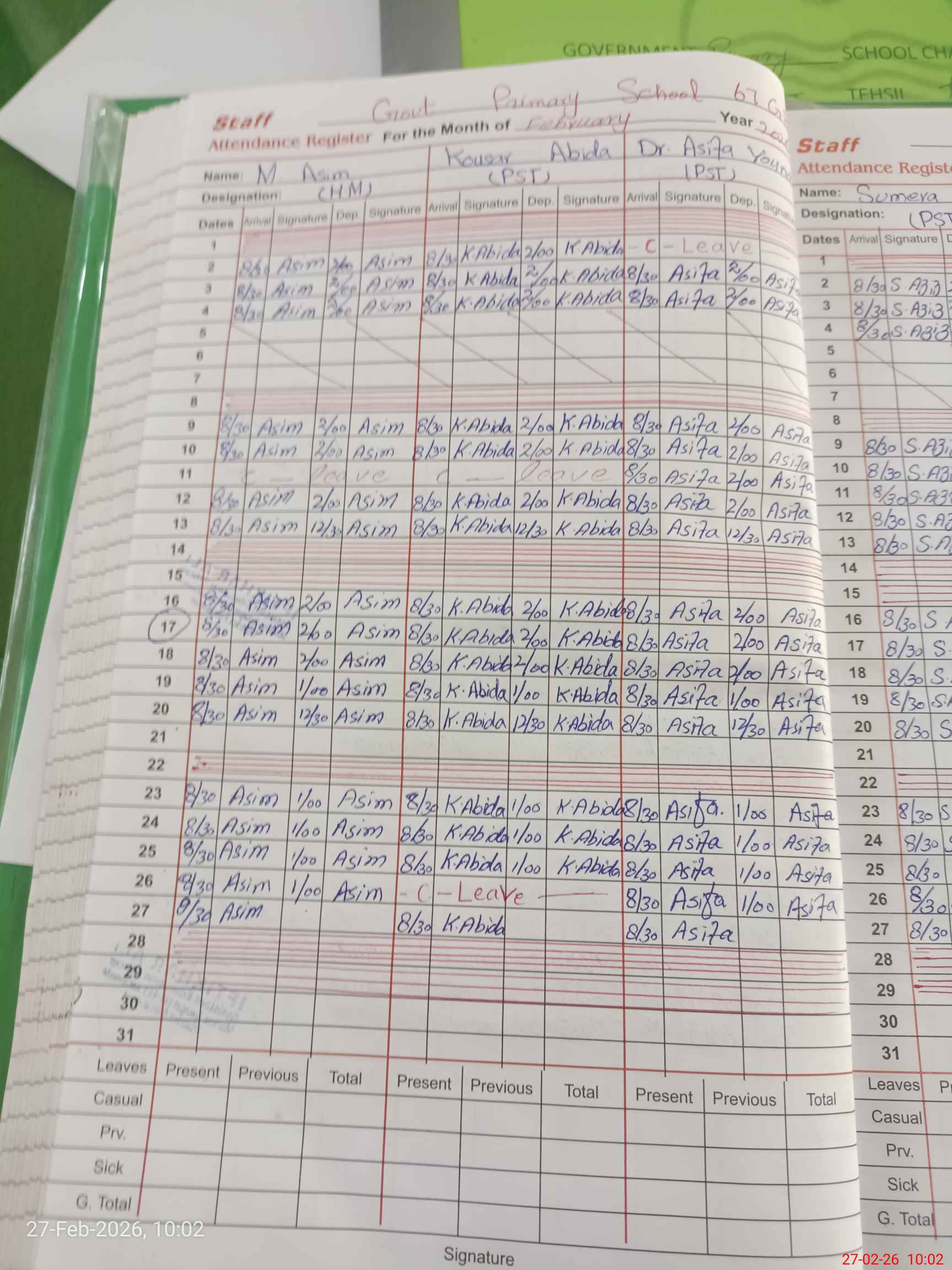 | Leave | Duty | Absent | Maternity | Medical | Ex- Pak |