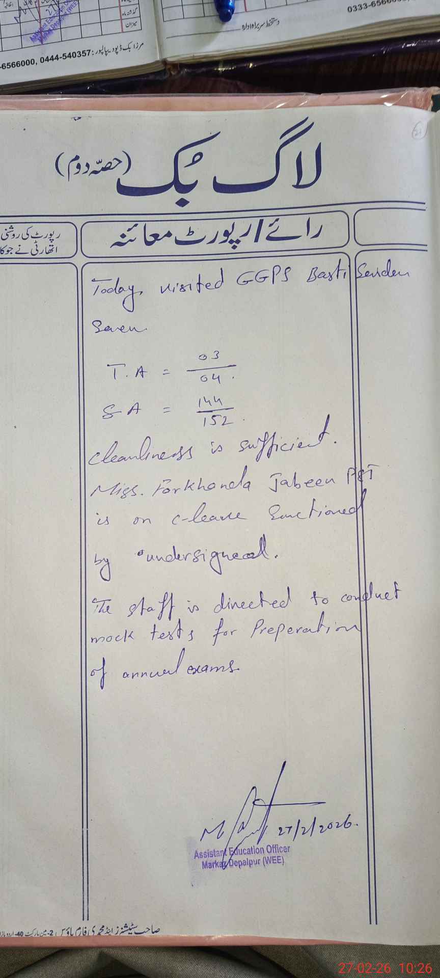 | EMIS Code: 39310742 | Name of School: GGPS BASTI SADIN SAIN | |||