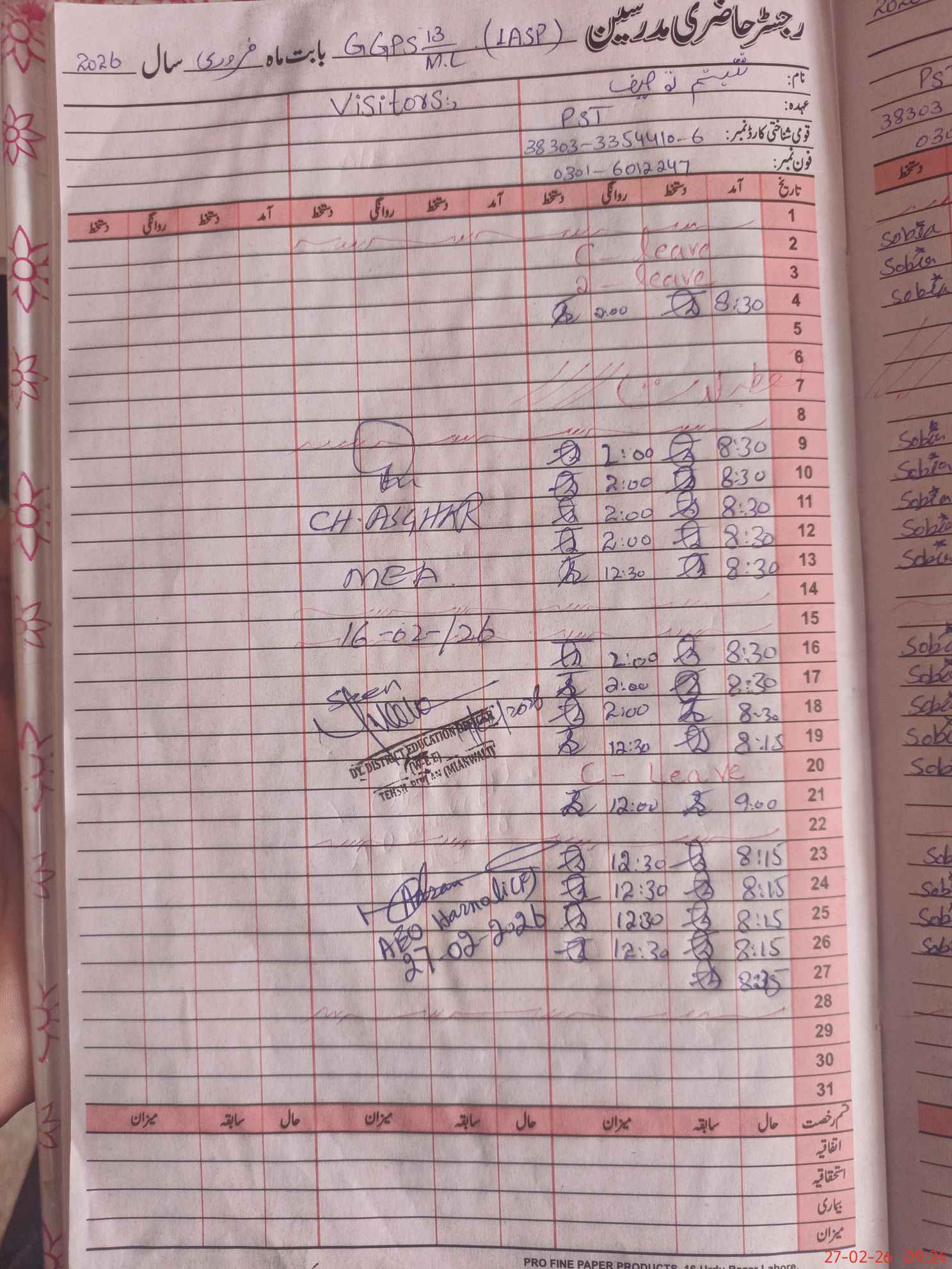 | Name: Bu**** La**** Designation: (School Headmaster's/Headmistress's) PST Phone/Cell Number: 03**** |