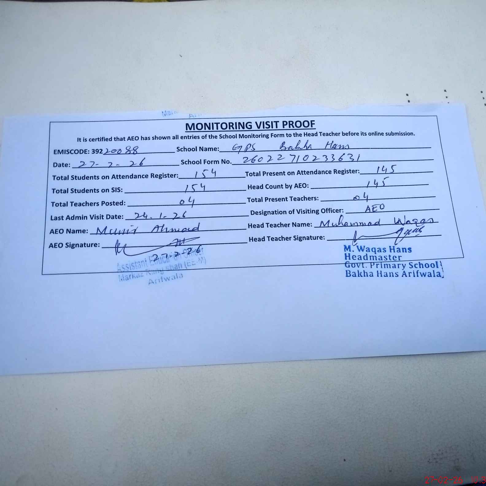 | EMIS Code: 39220088 | Name of School: GPS BAKHA HANS | |||