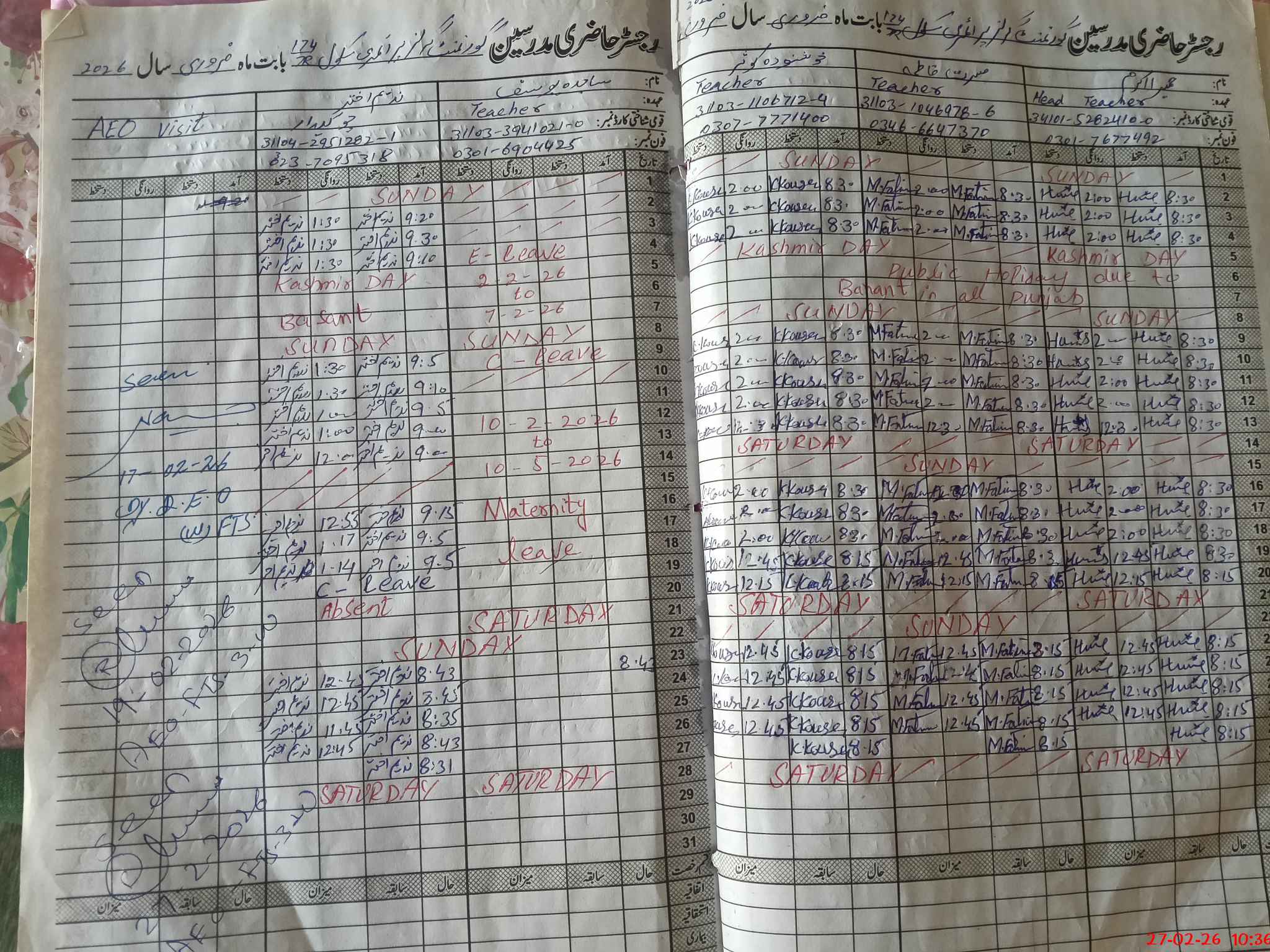 | Leave | Duty | Absent | Maternity | Medical | Ex- Pak |