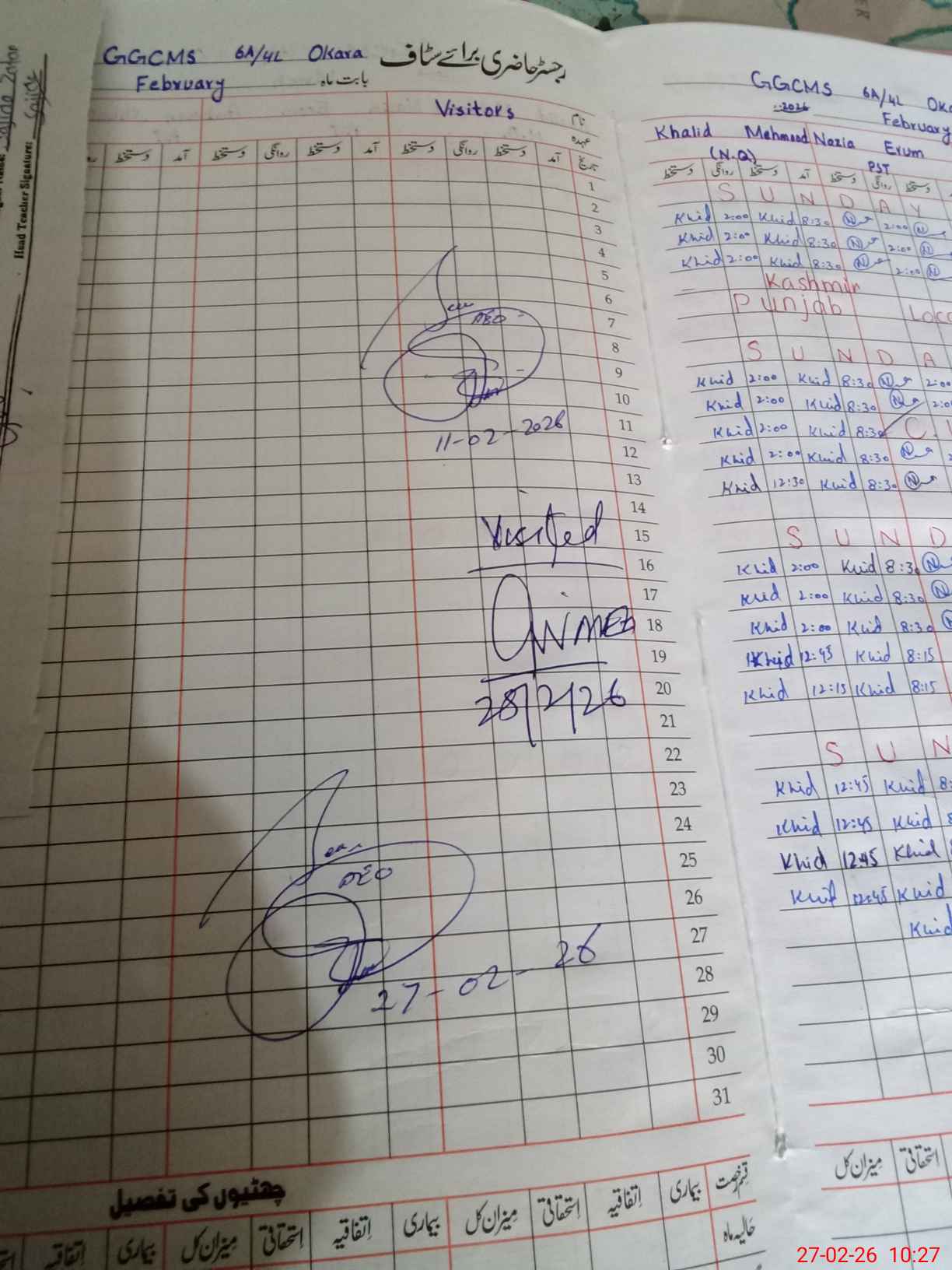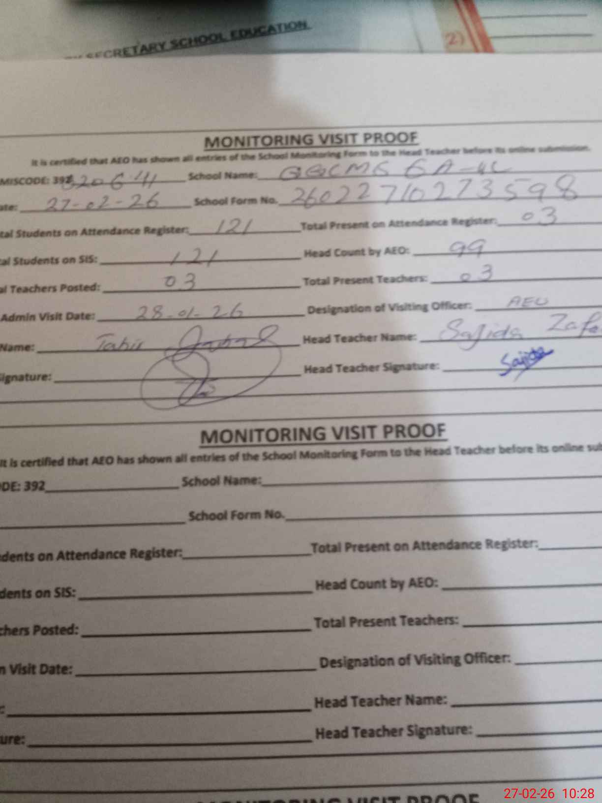 | Monitoring Date: 27-02-2026 | Start Time: 27-02-2026 09:46 AM | End Time: 27-02-2026 10:28 AM | Name of MEA: Mu**** Ta**** Iq**** | |