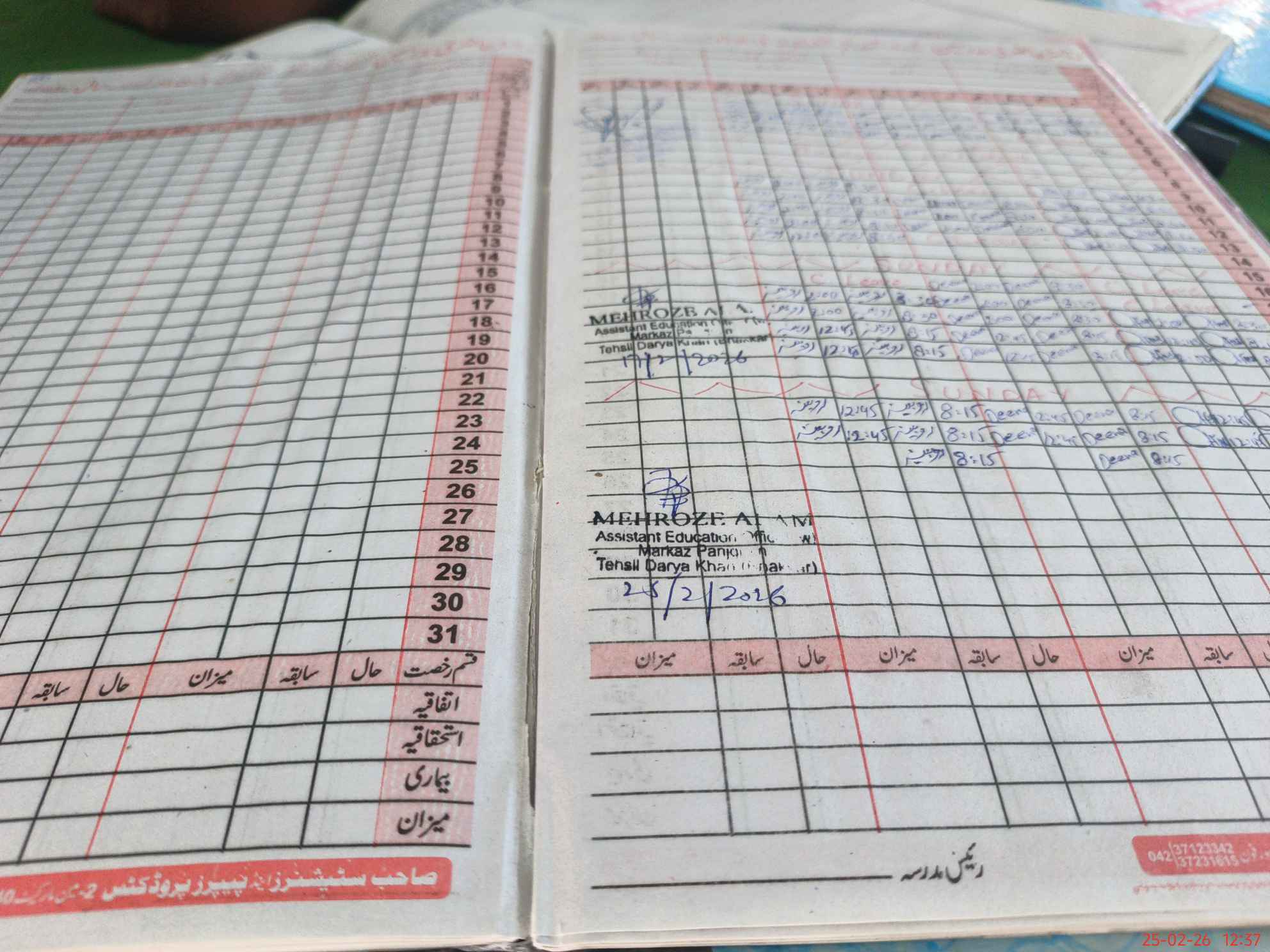 | CNIC | Full Name | Designation | R/C | Absence During Last Calender Month |