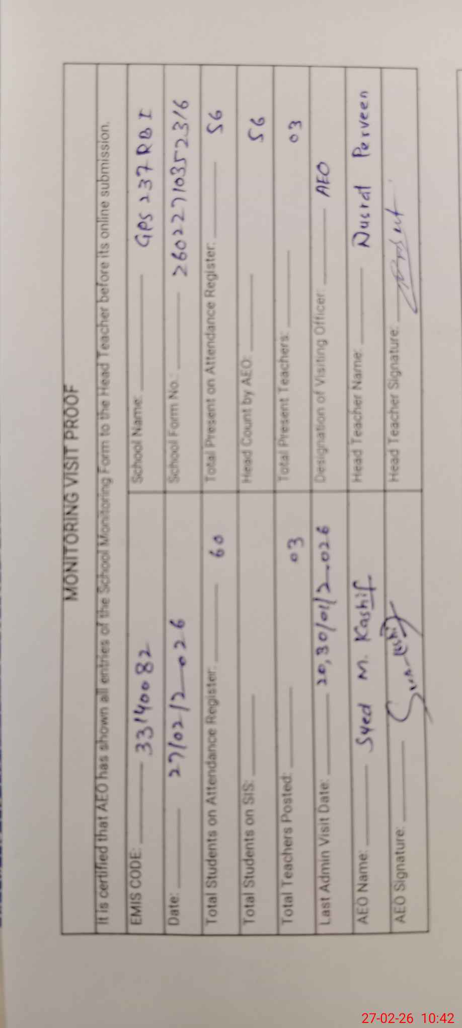 | Certified that this School was Inspected by the Undersigned MEA/DMO Today and the Information Stated Above is as Per Record. | |||||