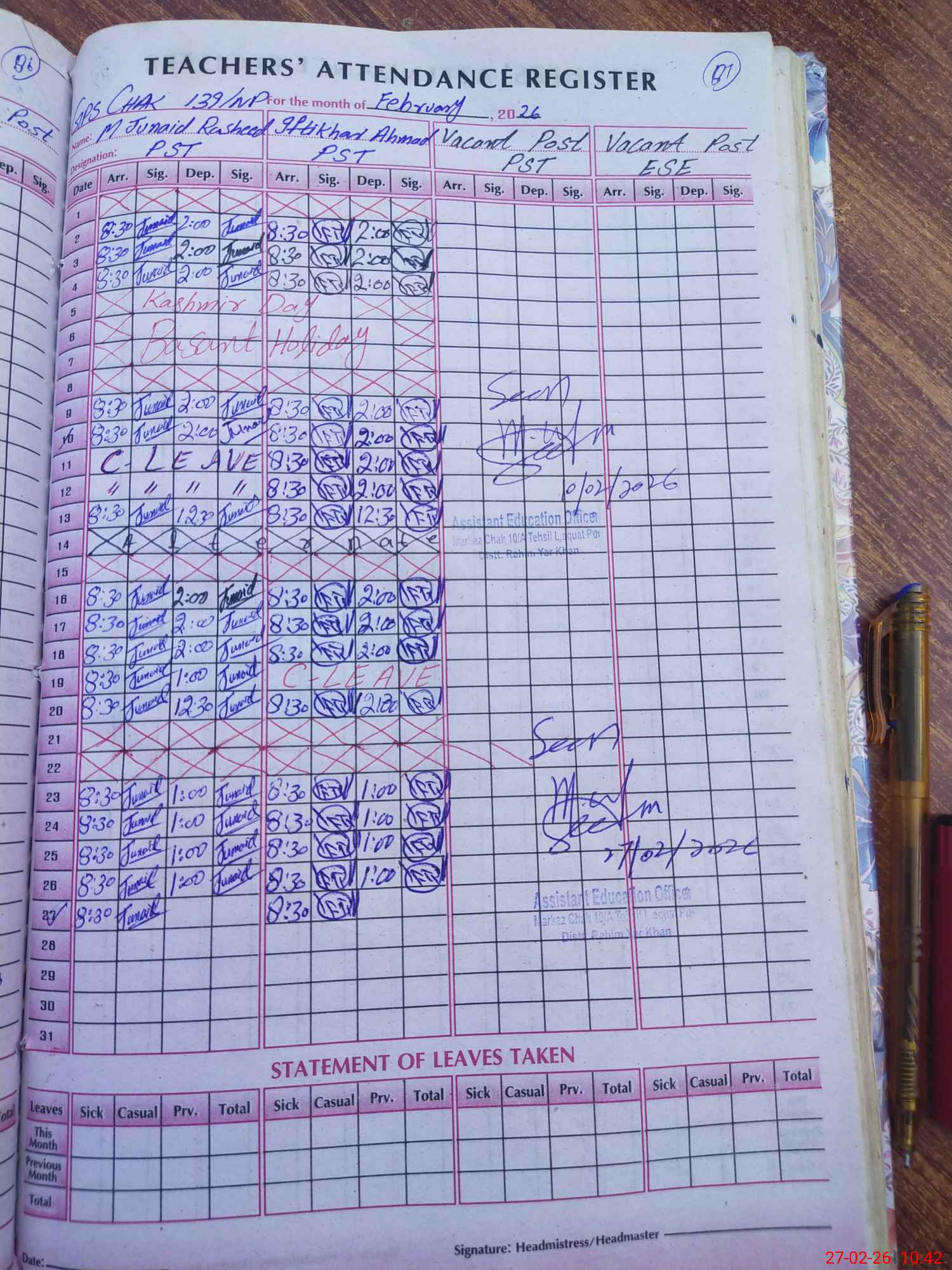 | Name: MU**** JU**** RA**** Designation: (School Headmaster's/Headmistress's) PST Phone/Cell Number: 03**** |