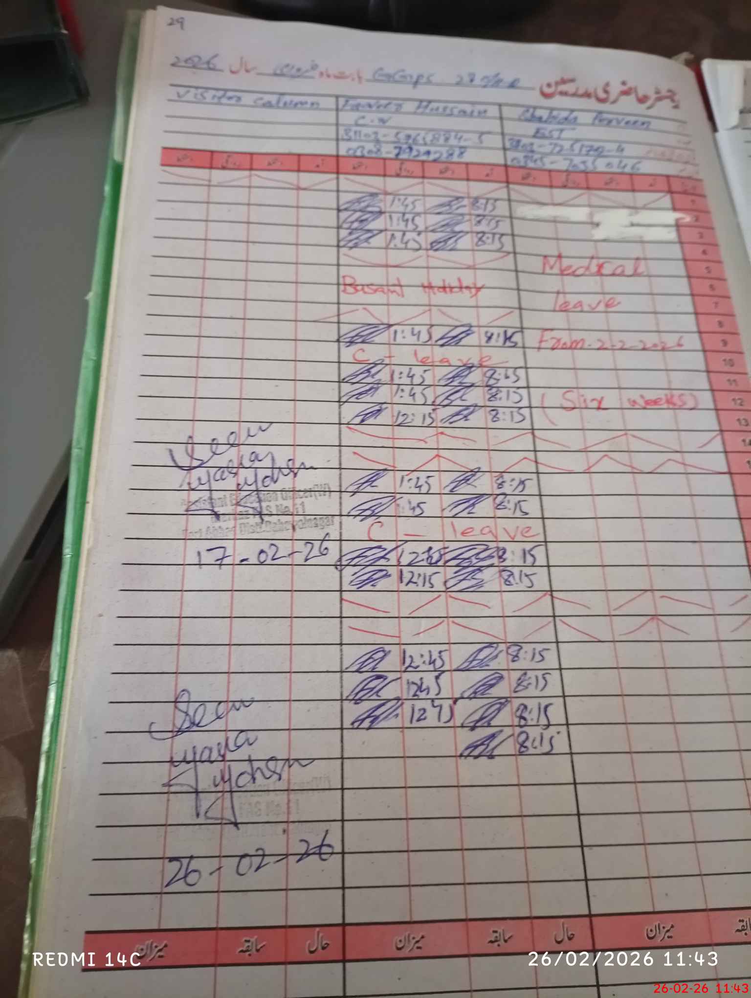 | Leave | Duty | Absent | Maternity | Medical | Ex- Pak |