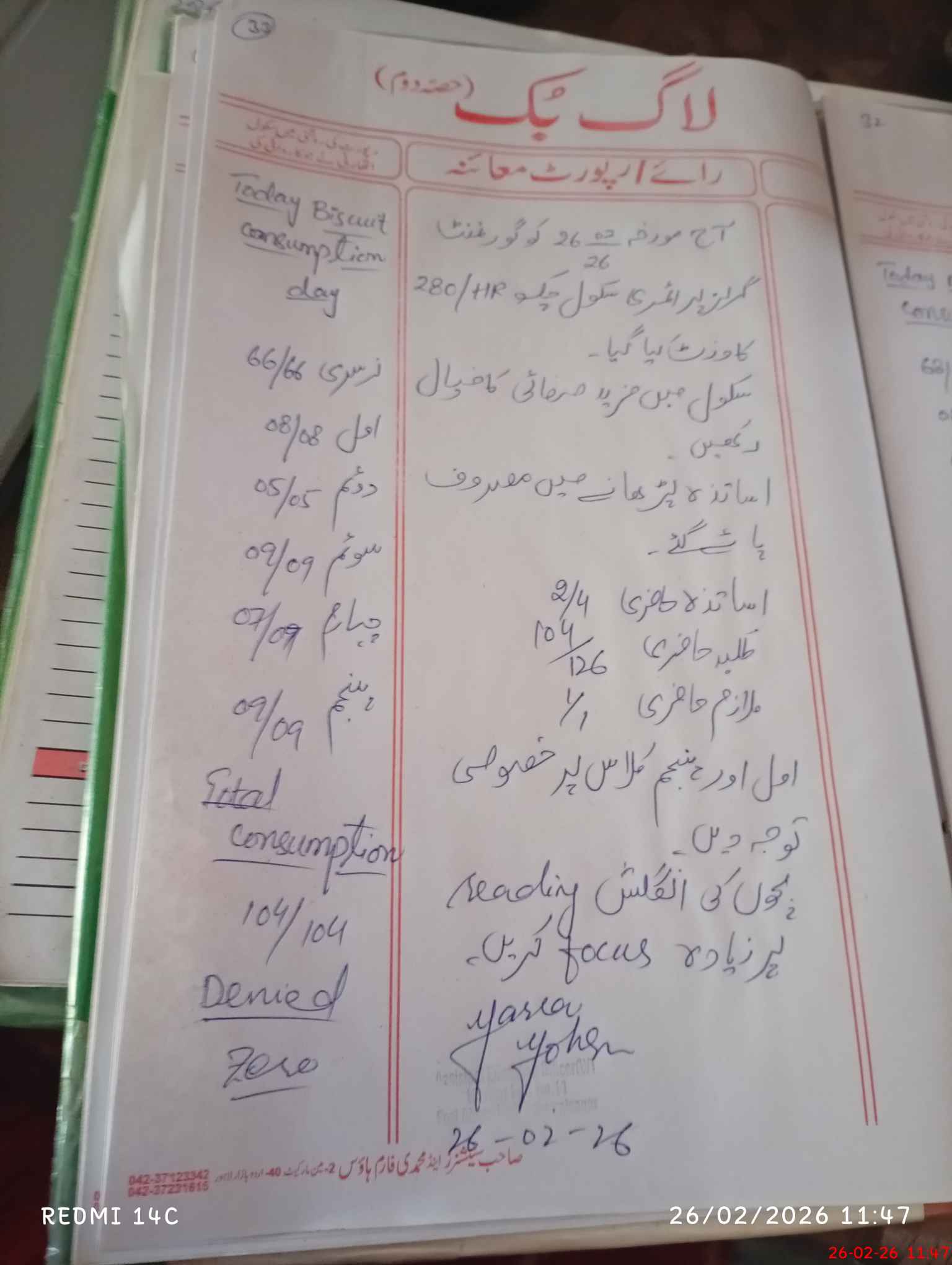 | Attendance Register | Head Teacher | MEA with School | Visit Proof |
