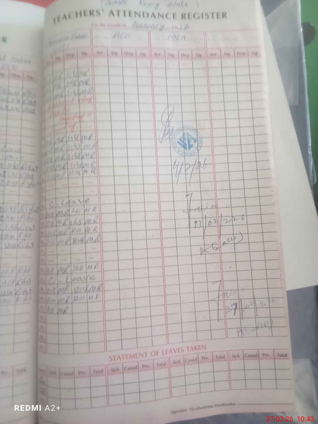 | Attendance Register | Head Teacher | MEA with School | Visit Proof |