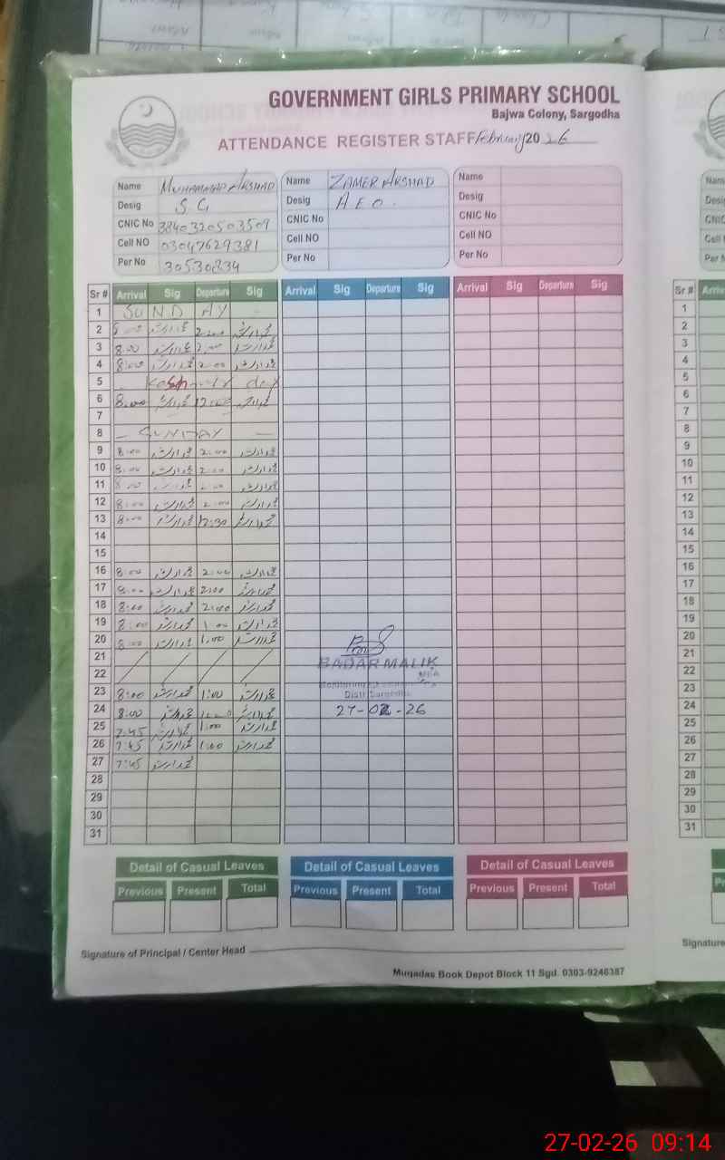 | Name: PA**** AK**** Designation: (School Headmaster's/Headmistress's) PST Phone/Cell Number: 03**** |
