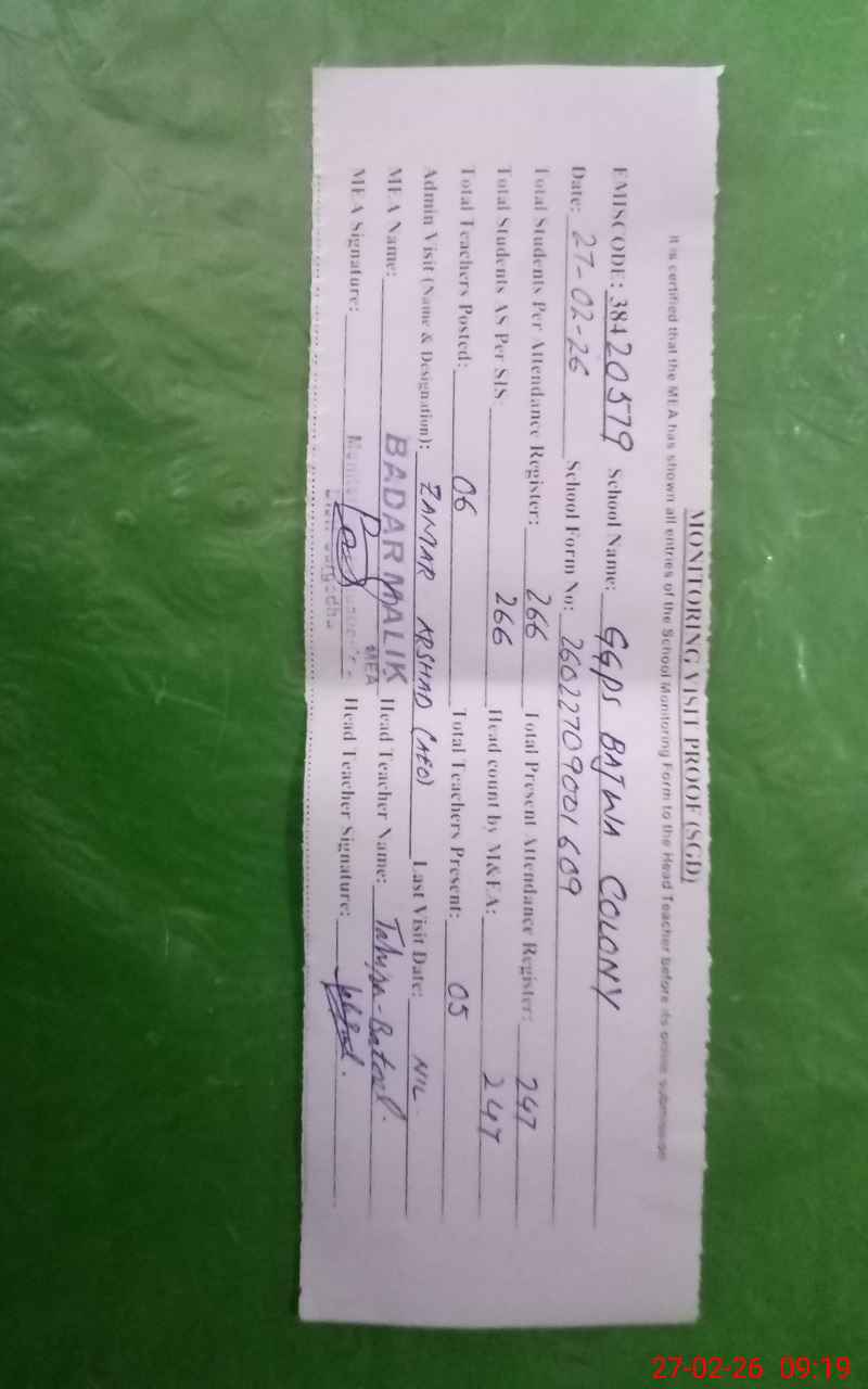 | EMIS Code: 38420579 | Name of School: GGPS BAJWA COLONY | |||