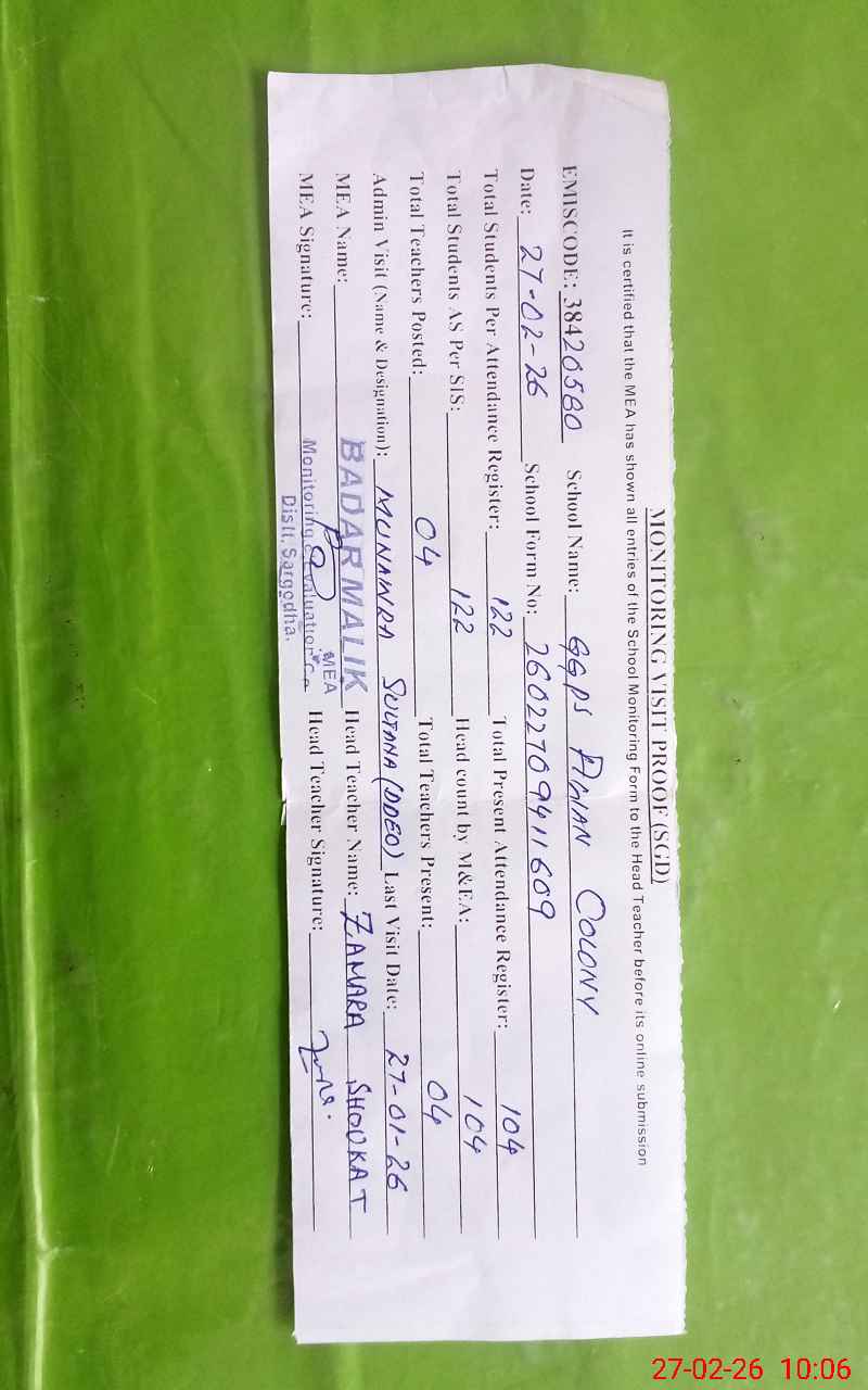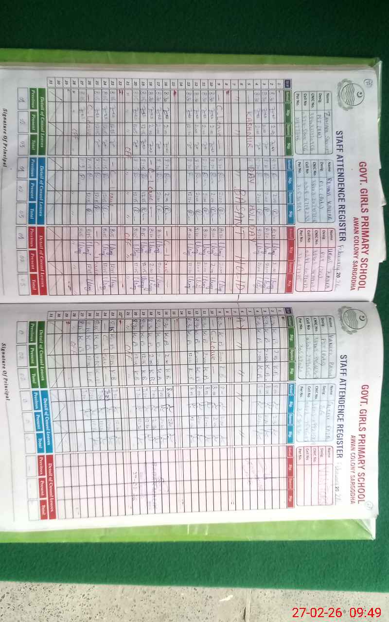 | EMIS Code: 38420580 | Name of School: GGPS AWAN COLONY | |||