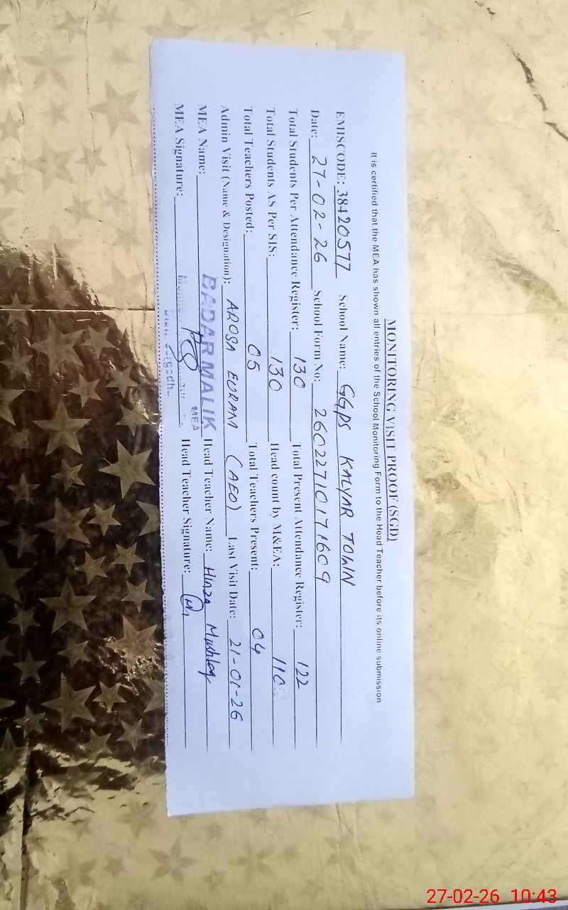 | EMIS Code: 38420577 | Name of School: GGPS KALYAR TOWN SARGODHA | |||