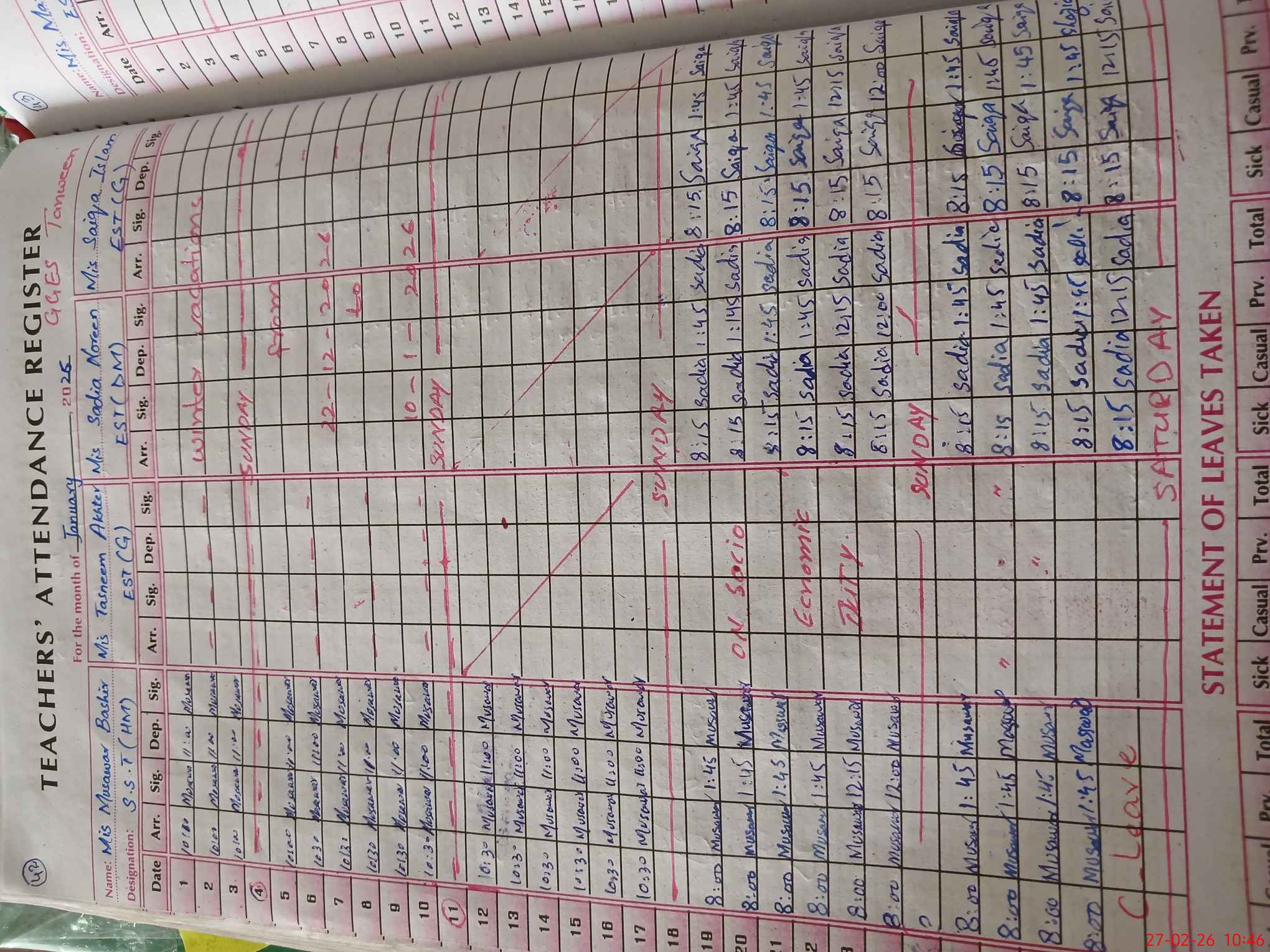 | Leave | Duty | Absent | Maternity | Medical | Ex- Pak |