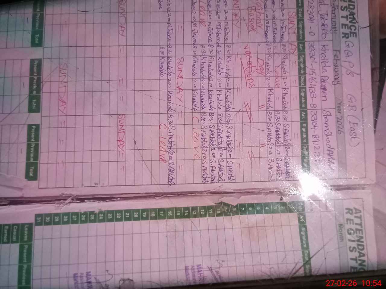 | CNIC | Full Name | Designation | R/C | Absence During Last Calender Month |