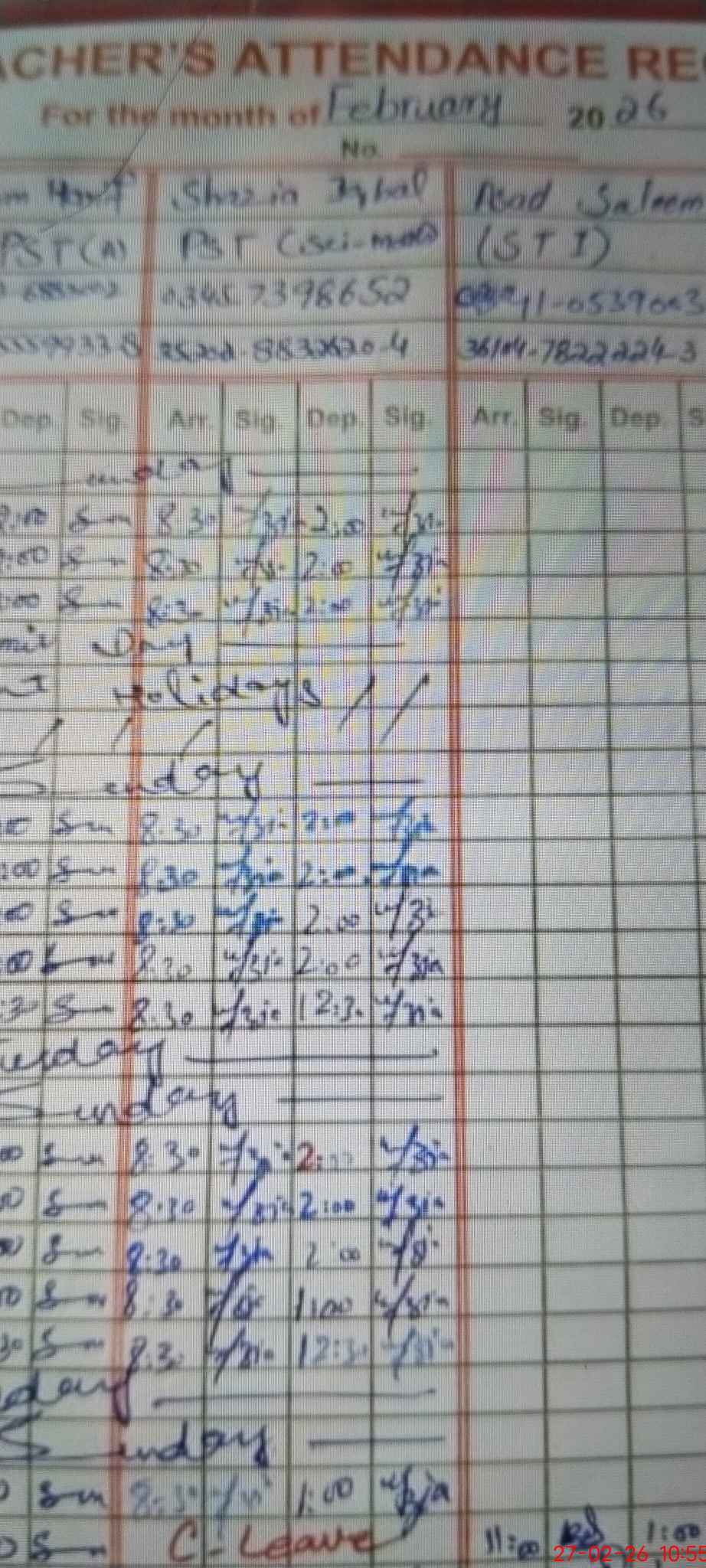 | Name: SH**** IQ**** Designation: (School Headmaster's/Headmistress's) PST Phone/Cell Number: 03**** |