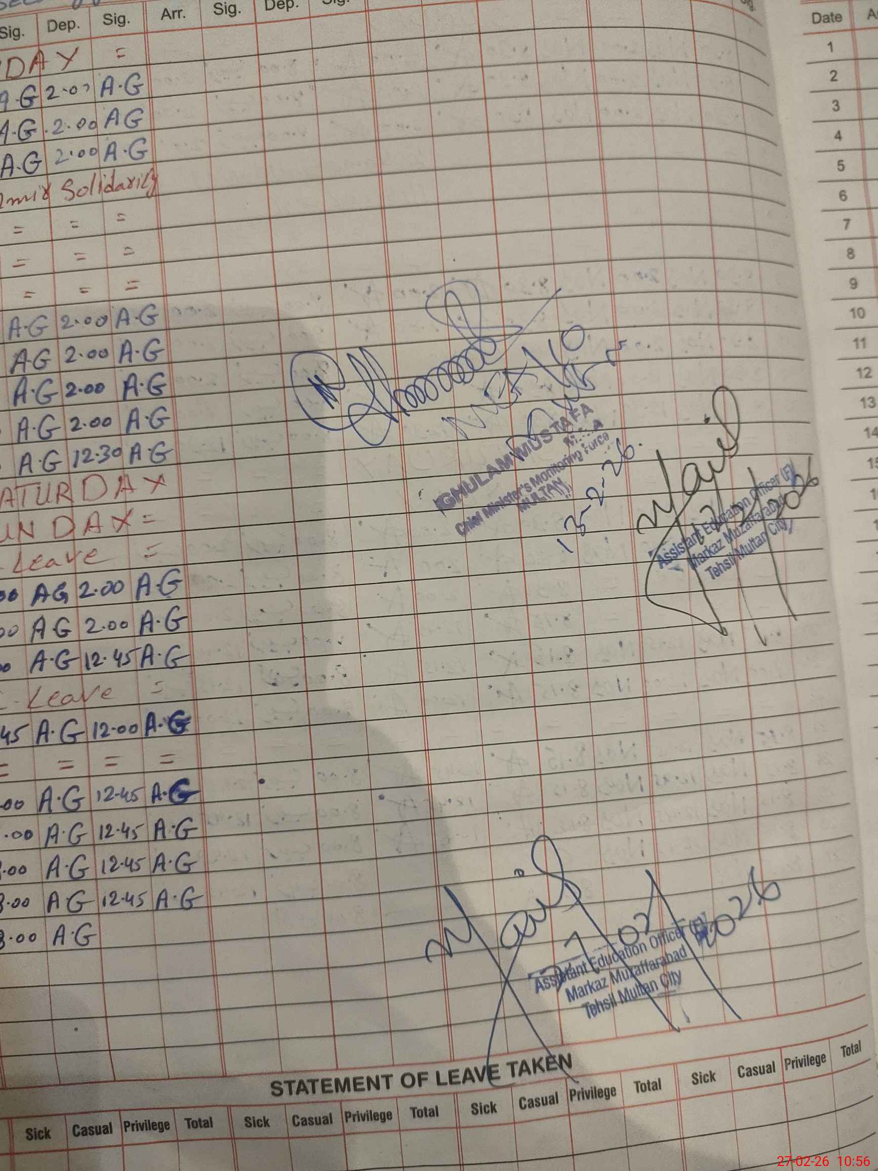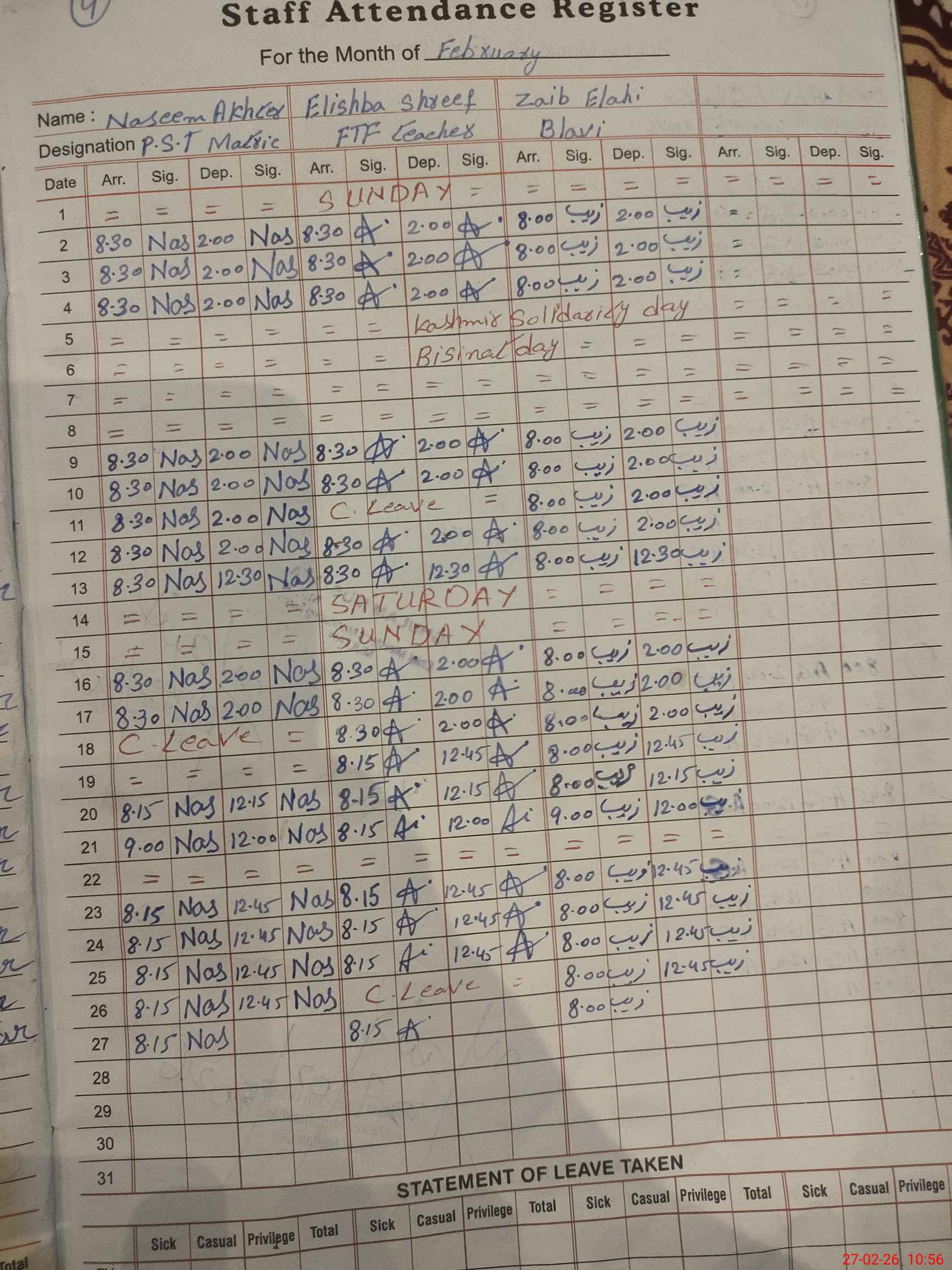 | 36**** | Na**** Pa**** | PST Arts | Regular | 0 | 0 | 0 | 0 | 0 | 0 | 0 | 0 | 0 | Casual |