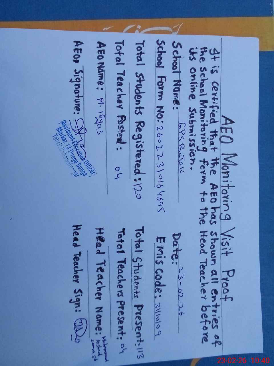 | EMIS Code: 31110109 | Name of School: GPS BAJAK | |||