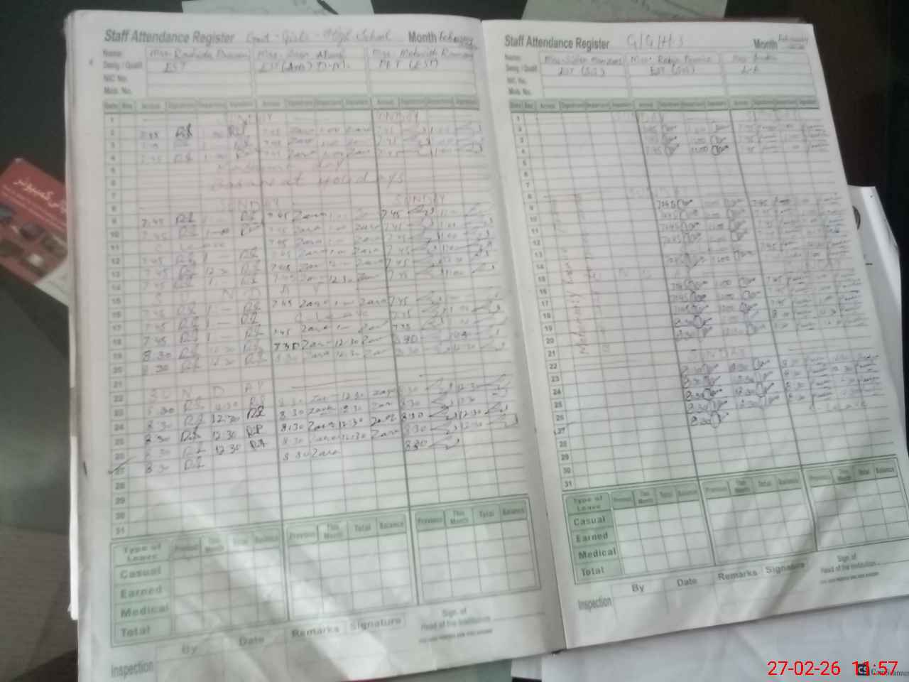 | Leave | Duty | Absent | Maternity | Medical | Ex- Pak |