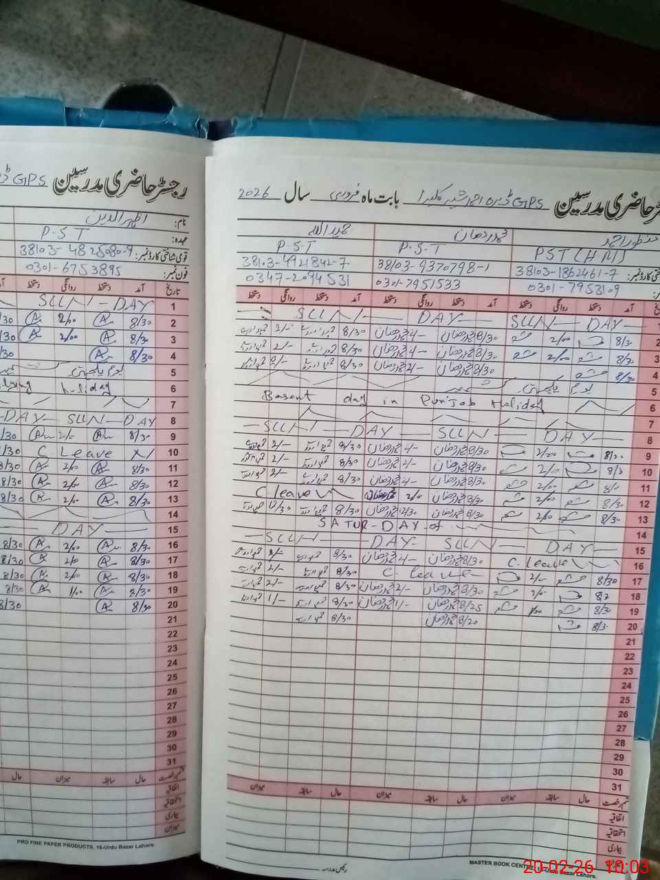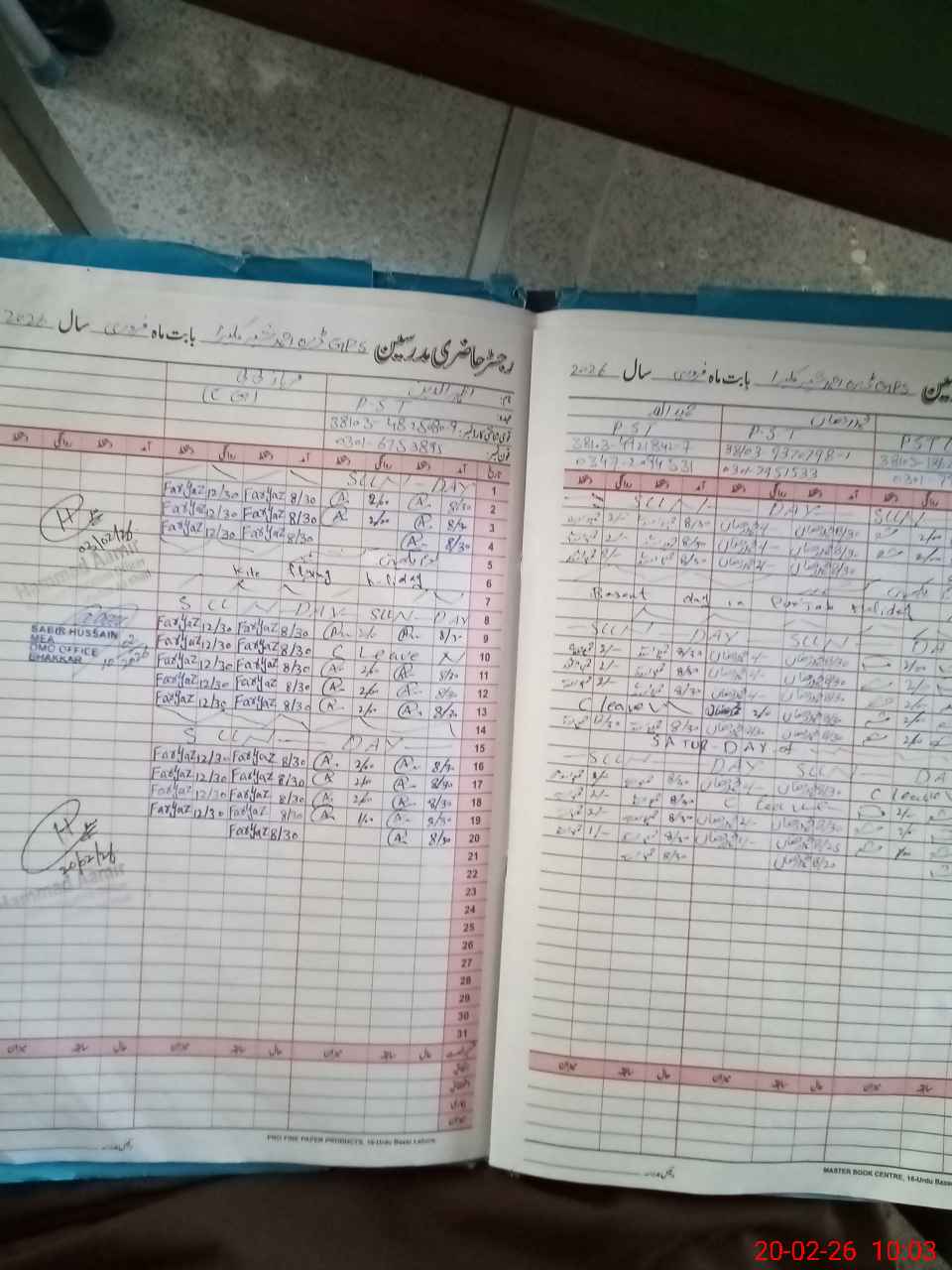 | CNIC | Full Name | Designation | R/C | Absence During Last Calender Month |