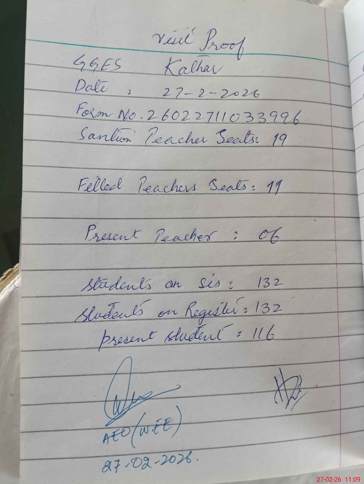 | Attendance Register | Head Teacher | MEA with School | Visit Proof |