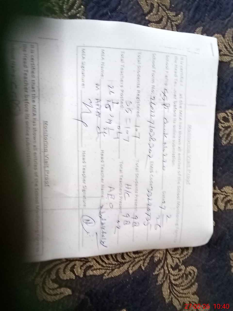 | Certified that this School was Inspected by the Undersigned MEA/DMO Today and the Information Stated Above is as Per Record. | |||||