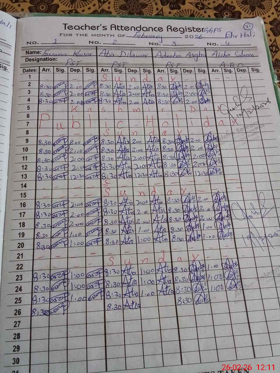 | Name: Fa**** Ka**** Designation: (School Headmaster's/Headmistress's) PST Phone/Cell Number: 03**** |