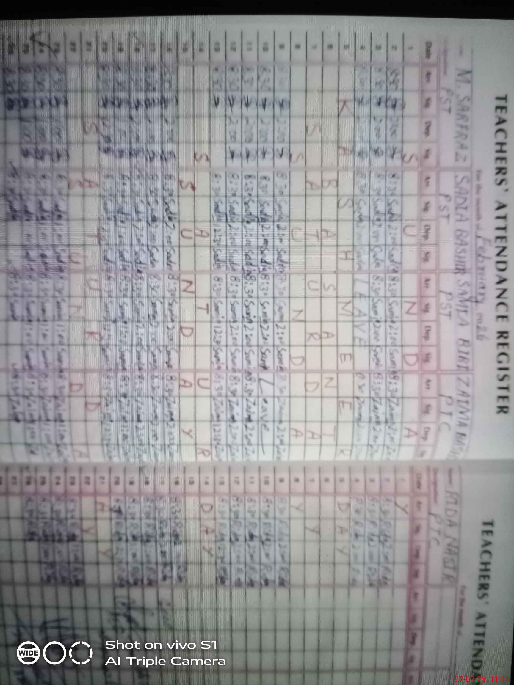 | Name: MU**** SA**** Designation: (School Headmaster's/Headmistress's) PST Phone/Cell Number: 03**** |