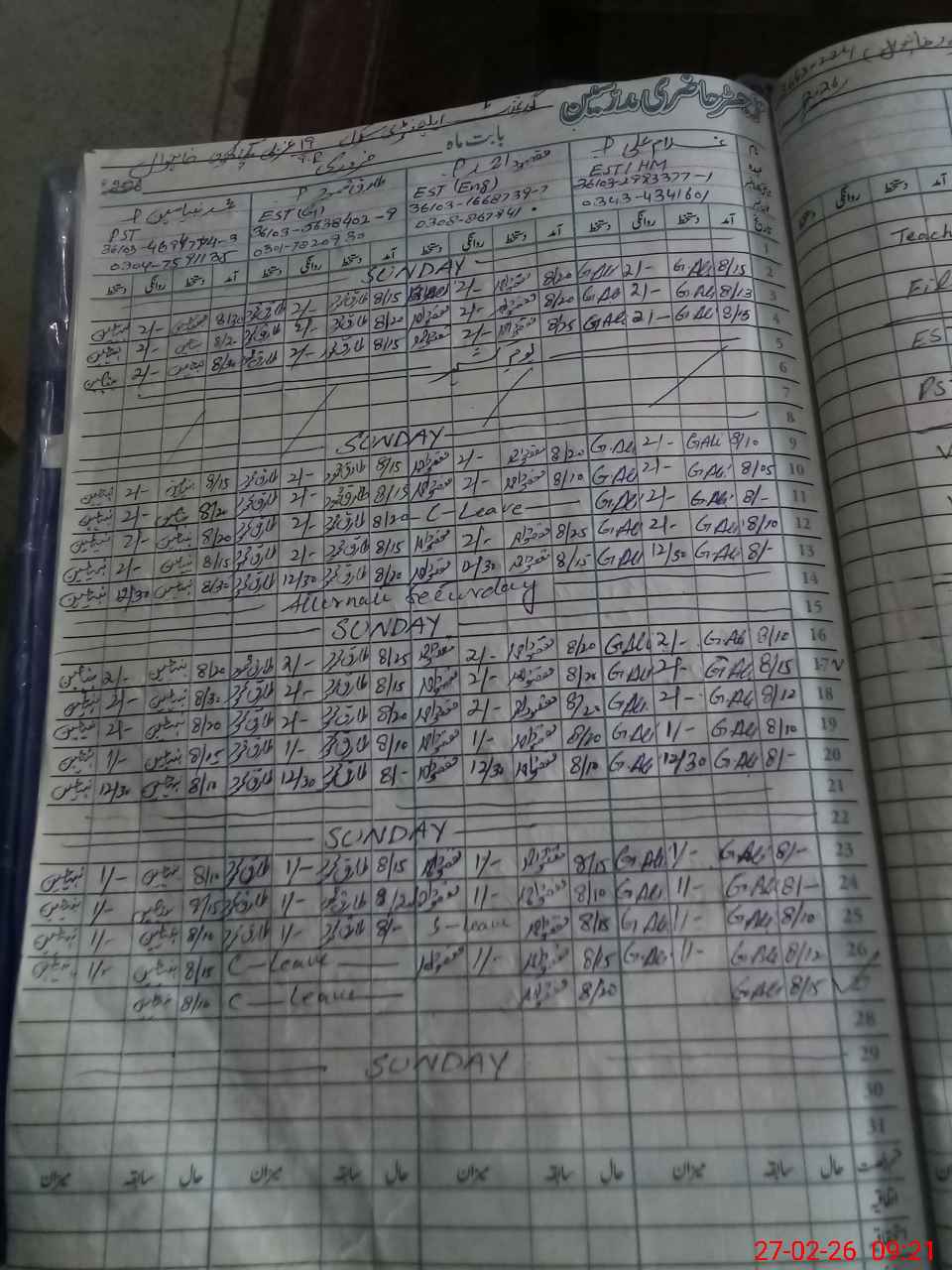 | Name: Mu**** Mu**** Kh**** Designation: (School Headmaster's/Headmistress's) SST (G) Phone/Cell Number: 03**** |