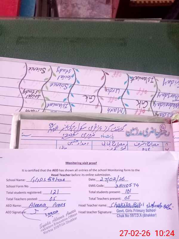 | EMIS Code: 38110574 | Name of School: GGPS CHAK NO.59/TDA | |||